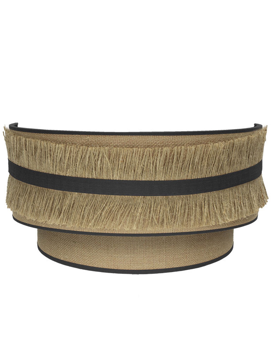 Aplique de Pared de 1 luz, acabado en tela de saco rodeado con cinta negra textil de lino.