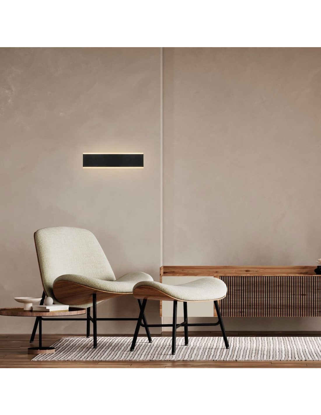 Aplique de Pared Led de aluminio y acrílico acabado negro. Medidas 30.5*7.5*4.6 cm.
