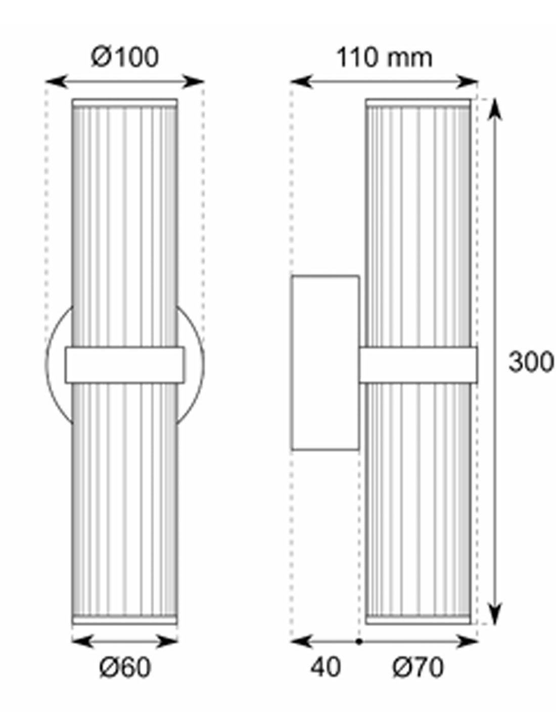 Aplique de Pared LED de acabado rosa cromo. Posibilidad de colocar horizontal y verticalmente.