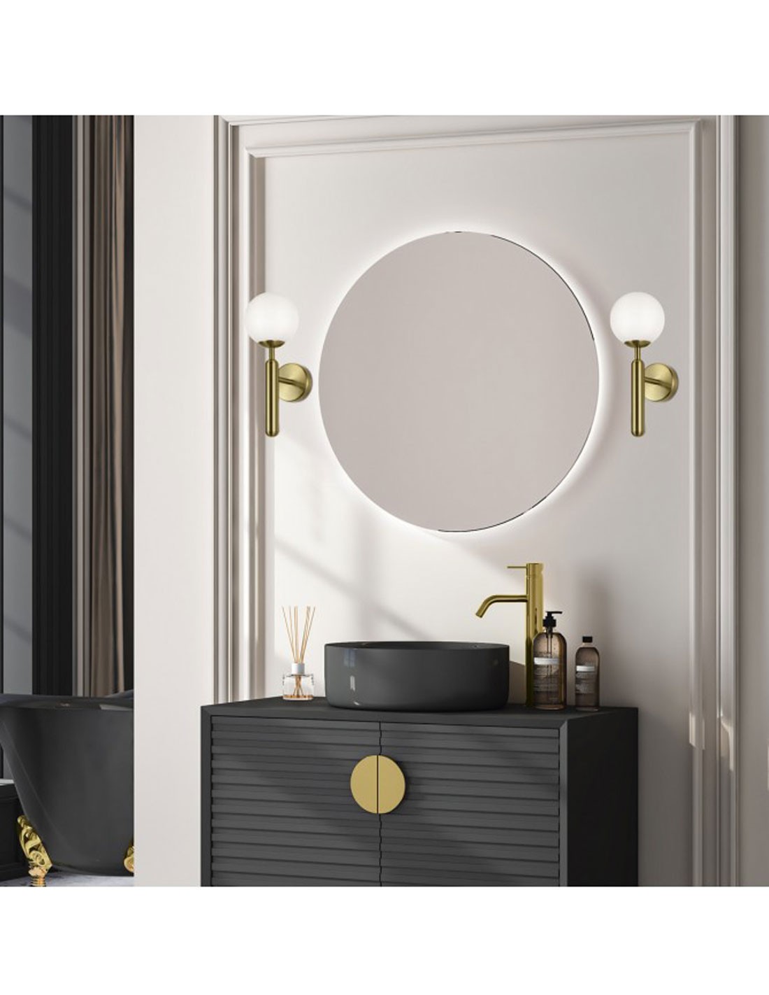 Aplique de Pared de metal Negro con bola opal de cristal de 12 cm.