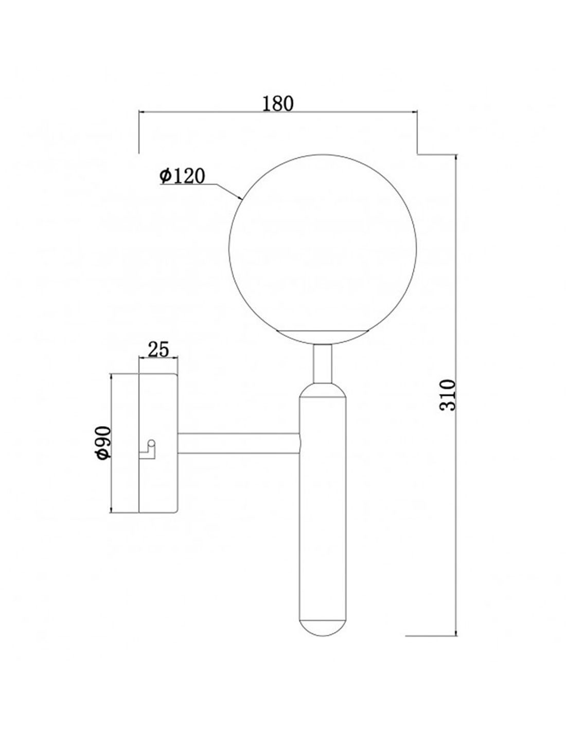 Aplique de Pared de metal Negro con bola opal de cristal de 12 cm.