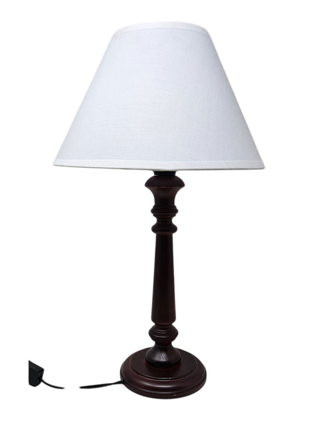 Lámpara de sobremesa de 1 Luz de madera con columna torneada y tubo. Incluye pantalla de tela.