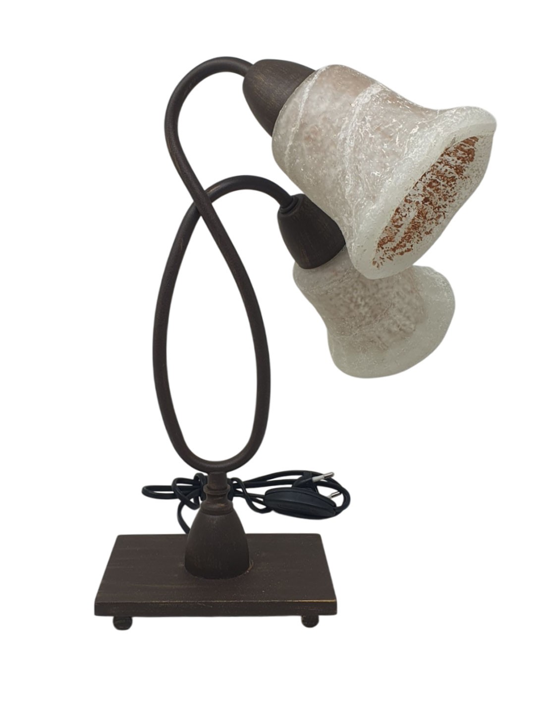 Lámpara de Sobremesa de 2 luces acabado marrón con tulipa de cristal triple. Alto 35 cm.