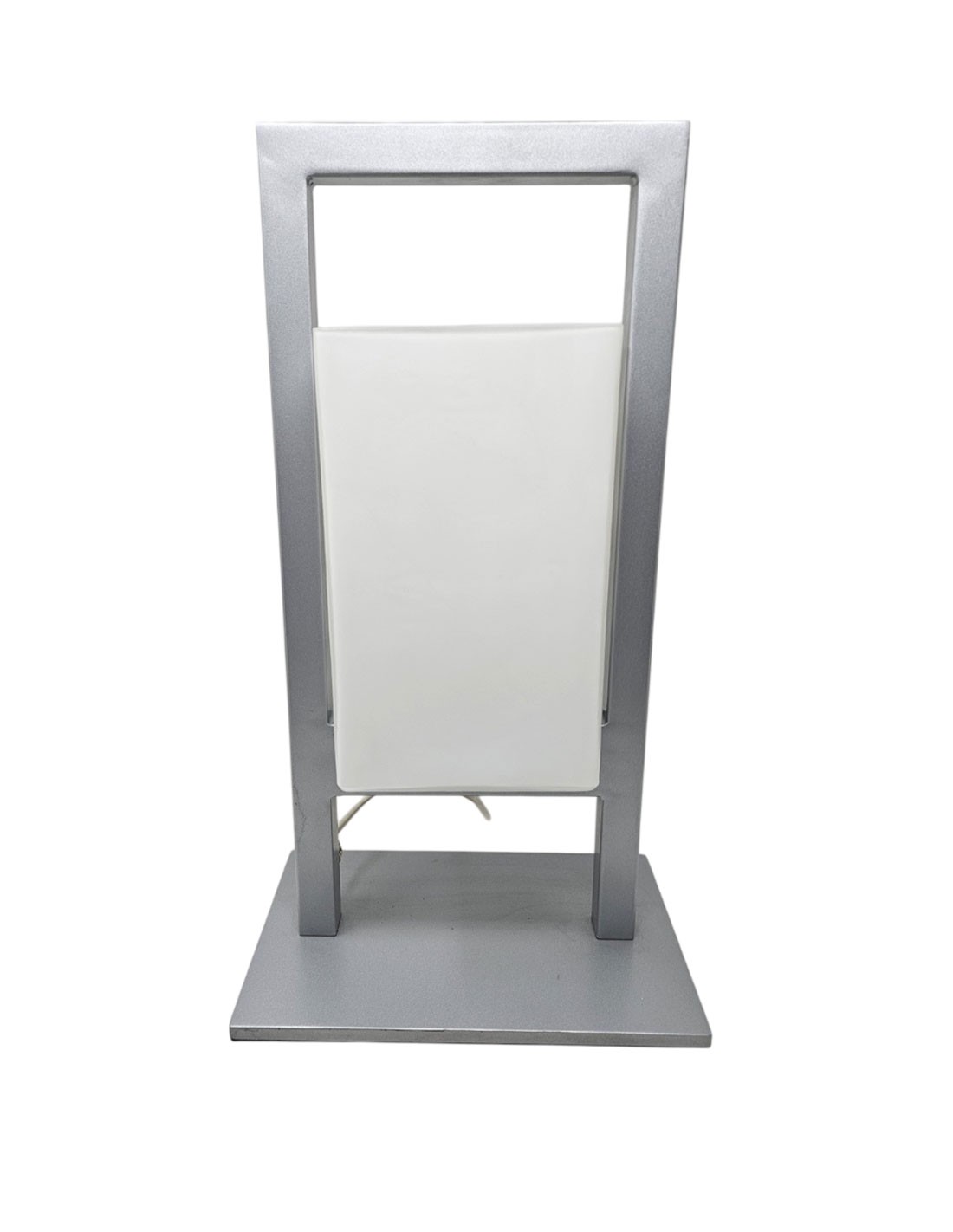 Lámpara de Sobremesa de 1 luz de metal acabado plata con tulipa de cristal opal.