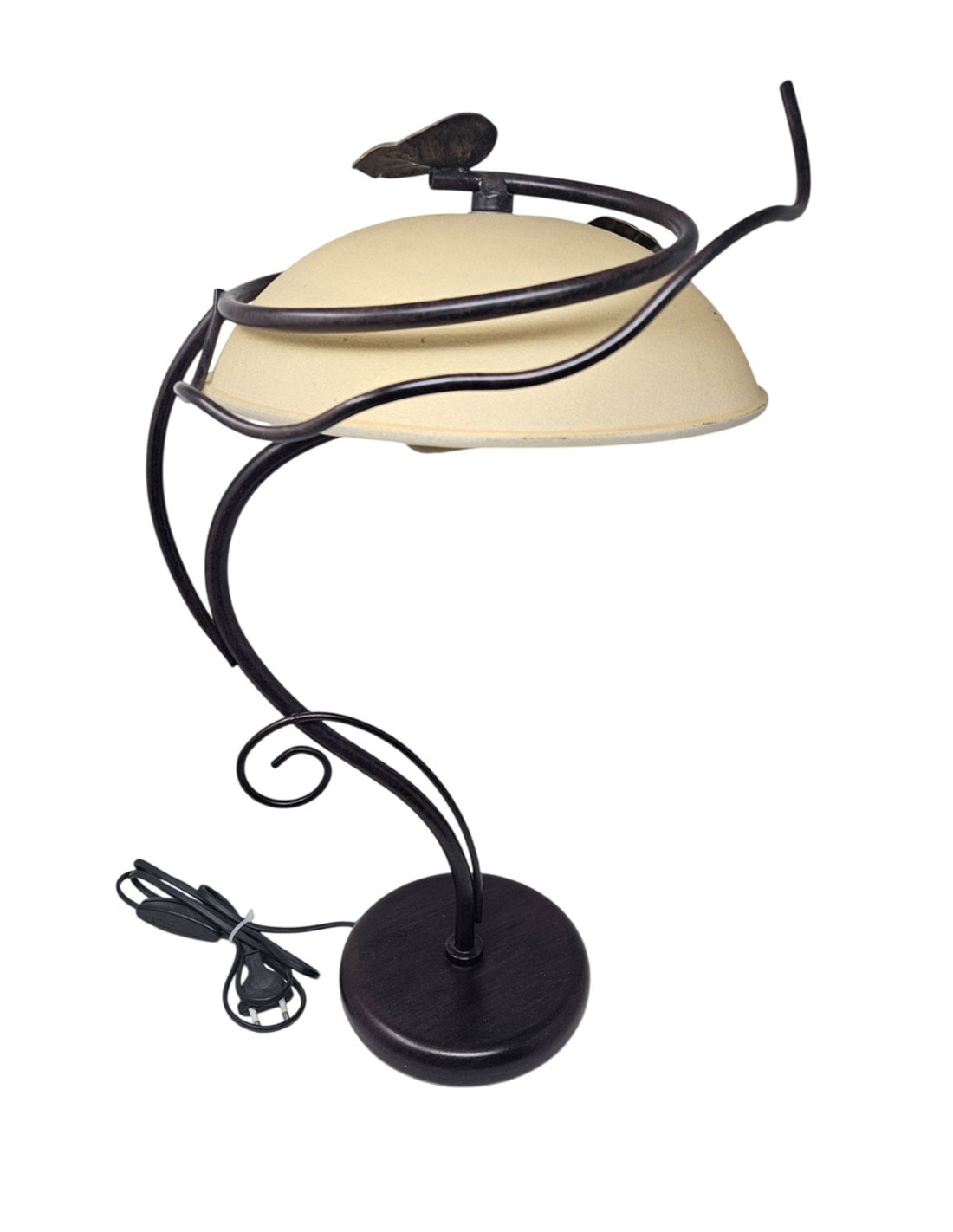 Lámpara de Sobremesa de 1 luz de metal acabado marrón con cristal beige de 25 cm. Detalle hoja de parra en parte superior.