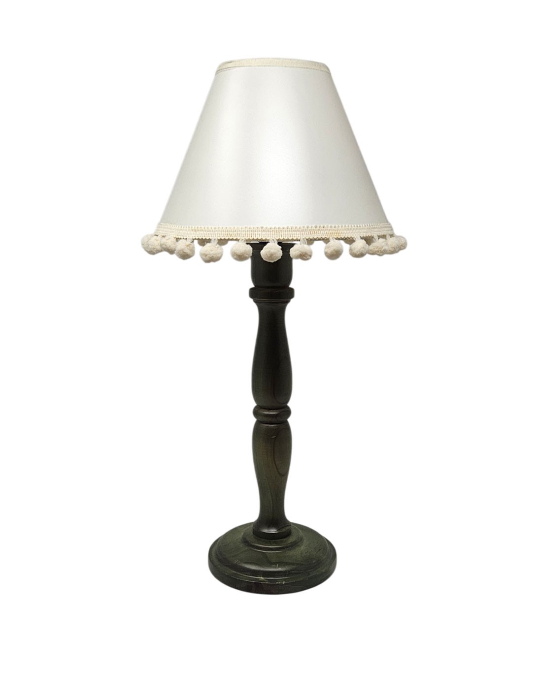 Lámpara de sobremesa de 1 Luz de madera con columna torneada y tubo. Incluye pantalla de tela.