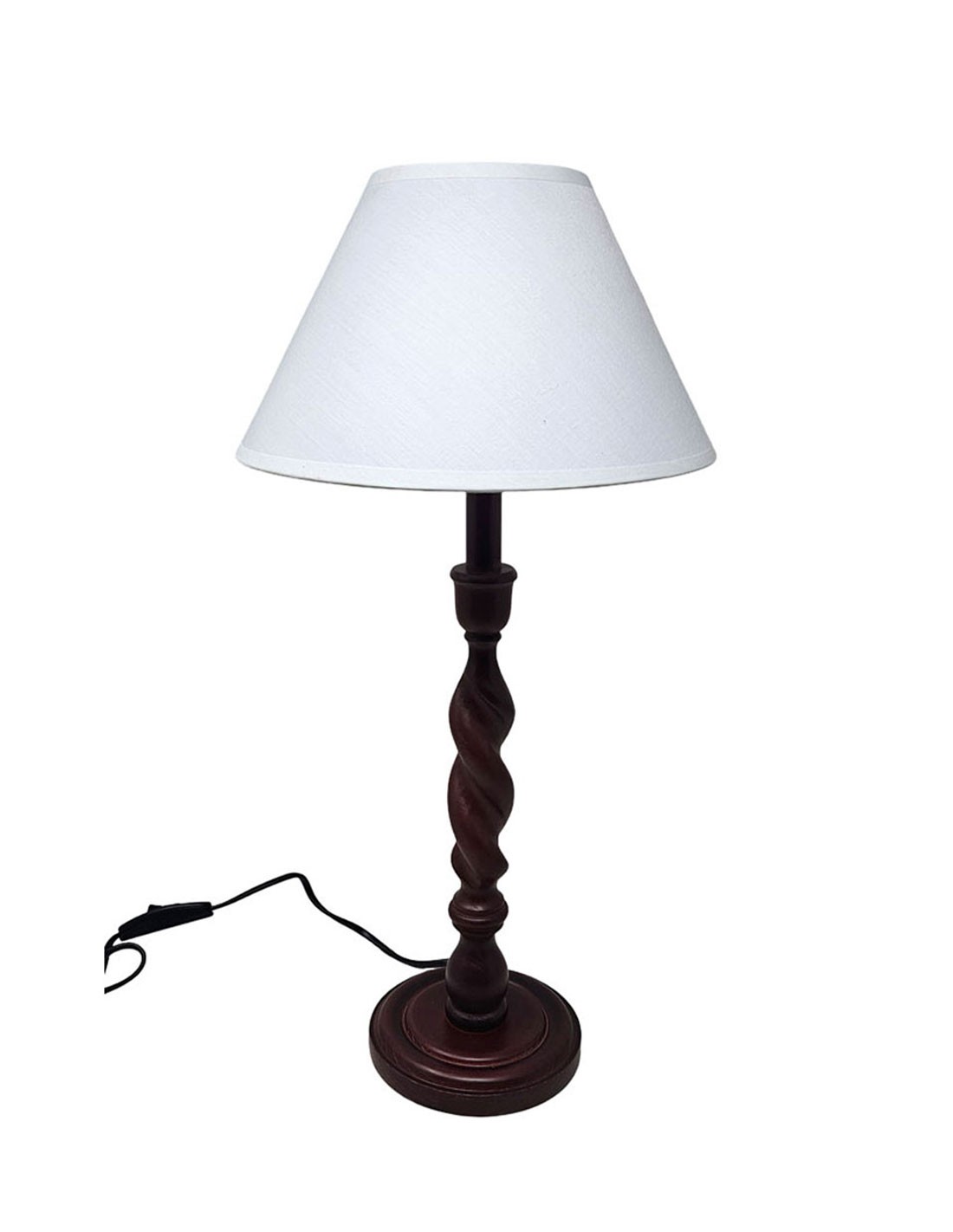 Lámpara de sobremesa de 1 Luz de madera salomónico mexicano con pantalla tela plisada beige. Alto 57 cm