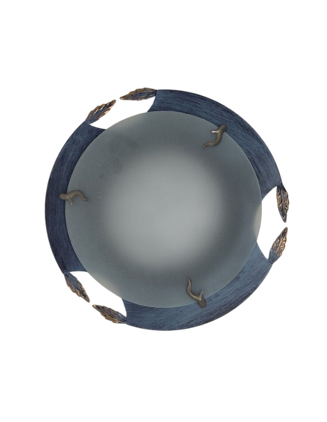 Plafones de forma disponibles en pátina azul, marrón, oro y verde y en dos medidas, diámetro 32 y 38 cm.
