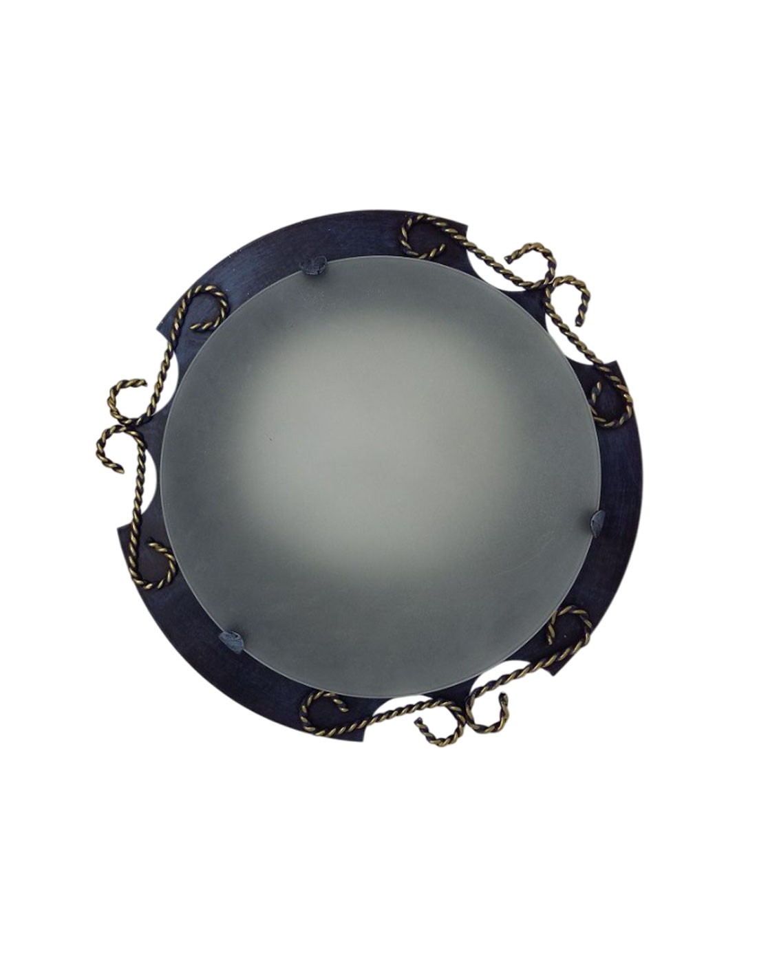 Plafón de Techo de 1 luz de forja pátina azul con cordón oro, diámetro 28 cm.