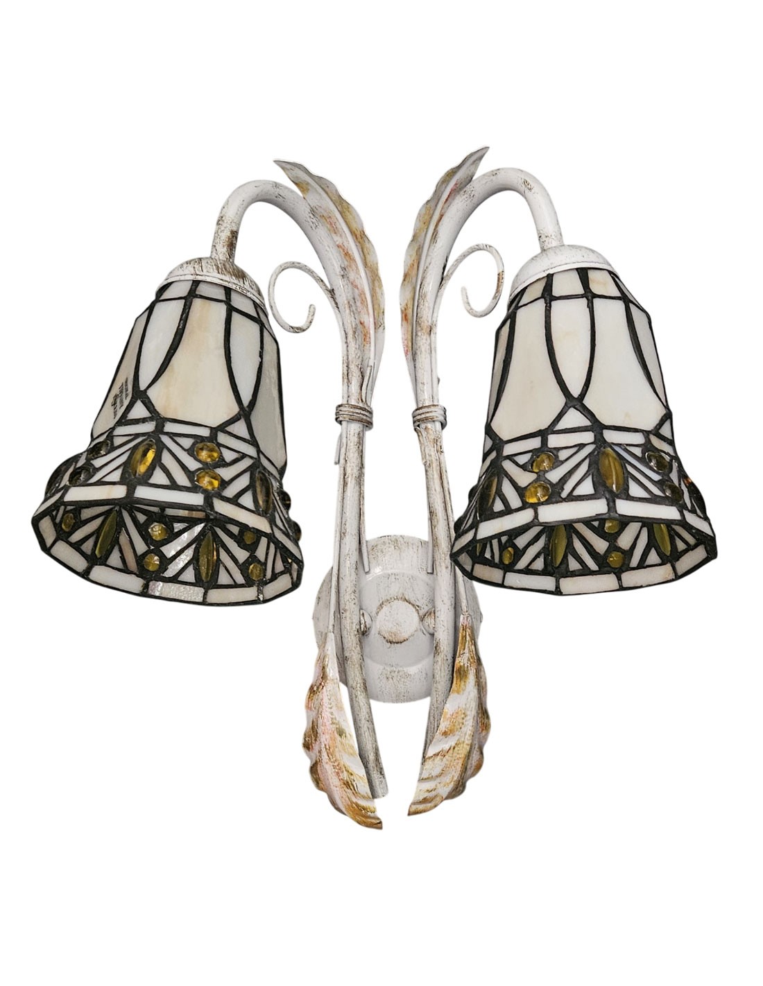 Aplique de Pared de metal blanco patinado con detalle de hojas y tulipas TIFFANY de 2 luces.