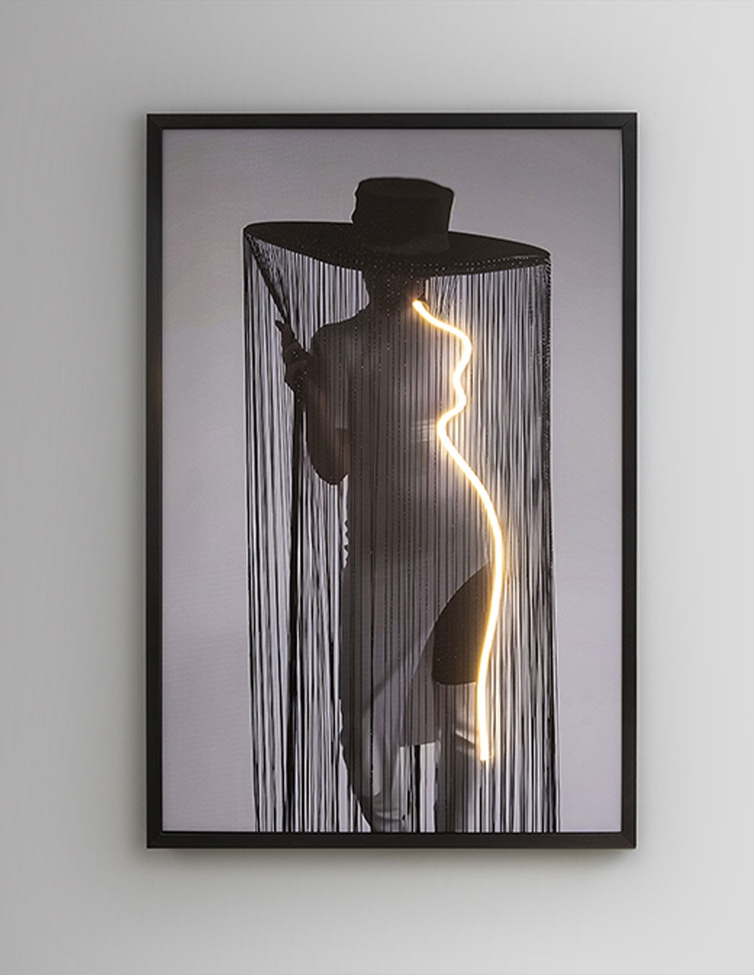 Figura de mujer con sombrero con tira de luz led decorativa.