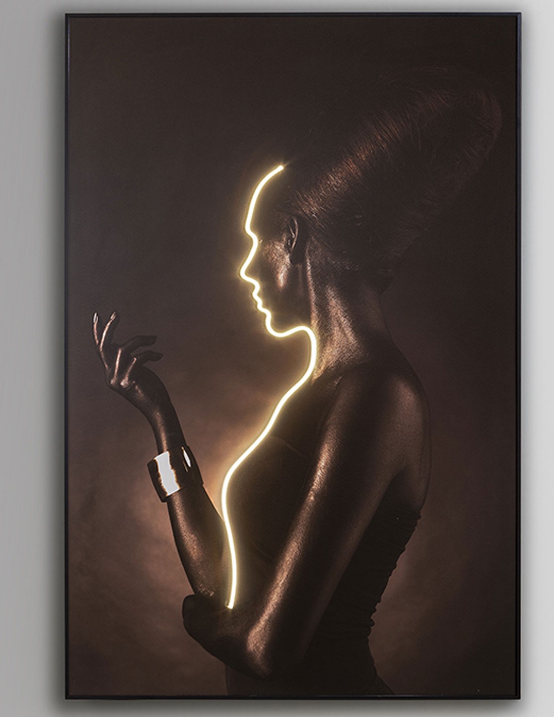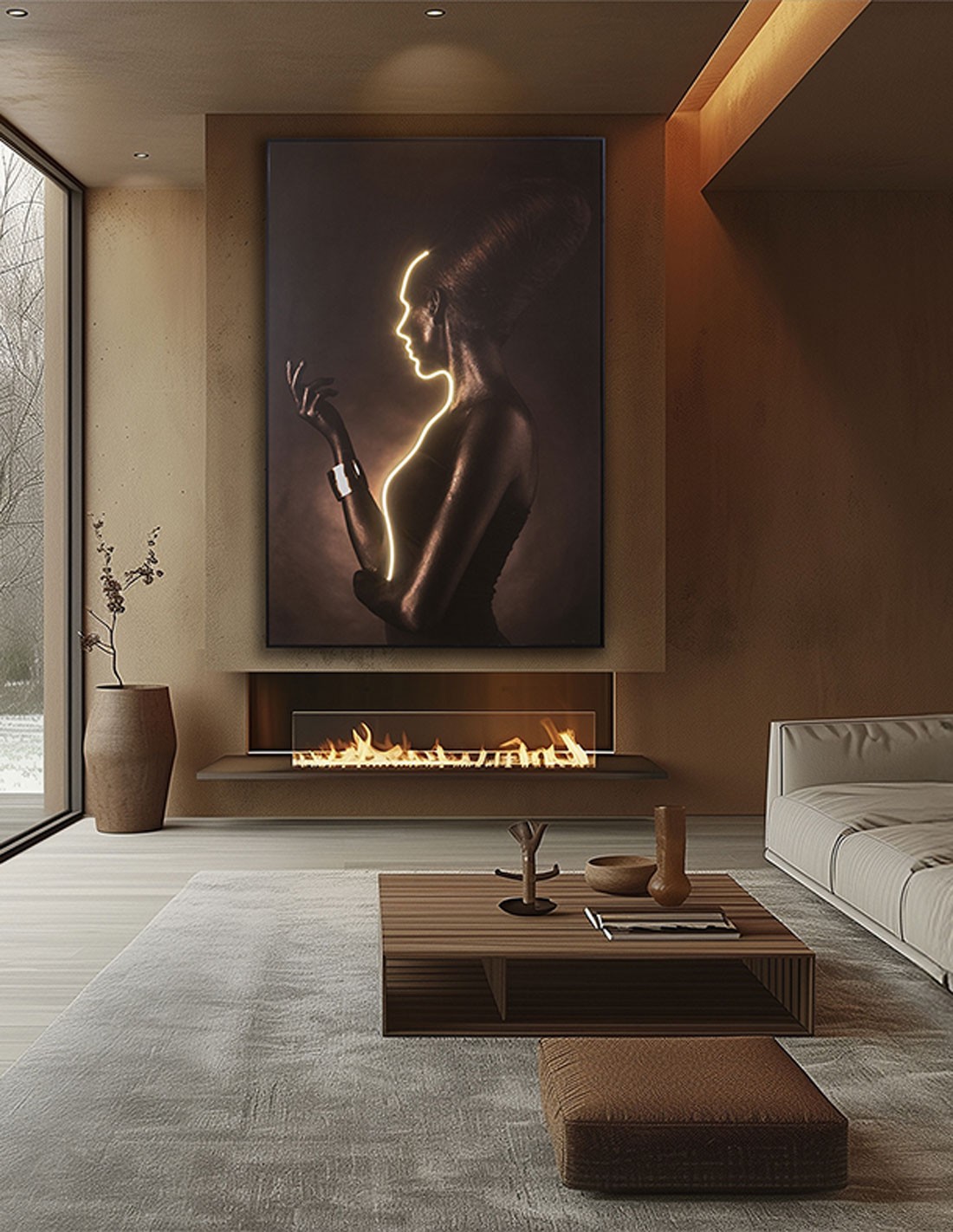 Perfil de mujer resaltando la silueta con tira led decorativa.