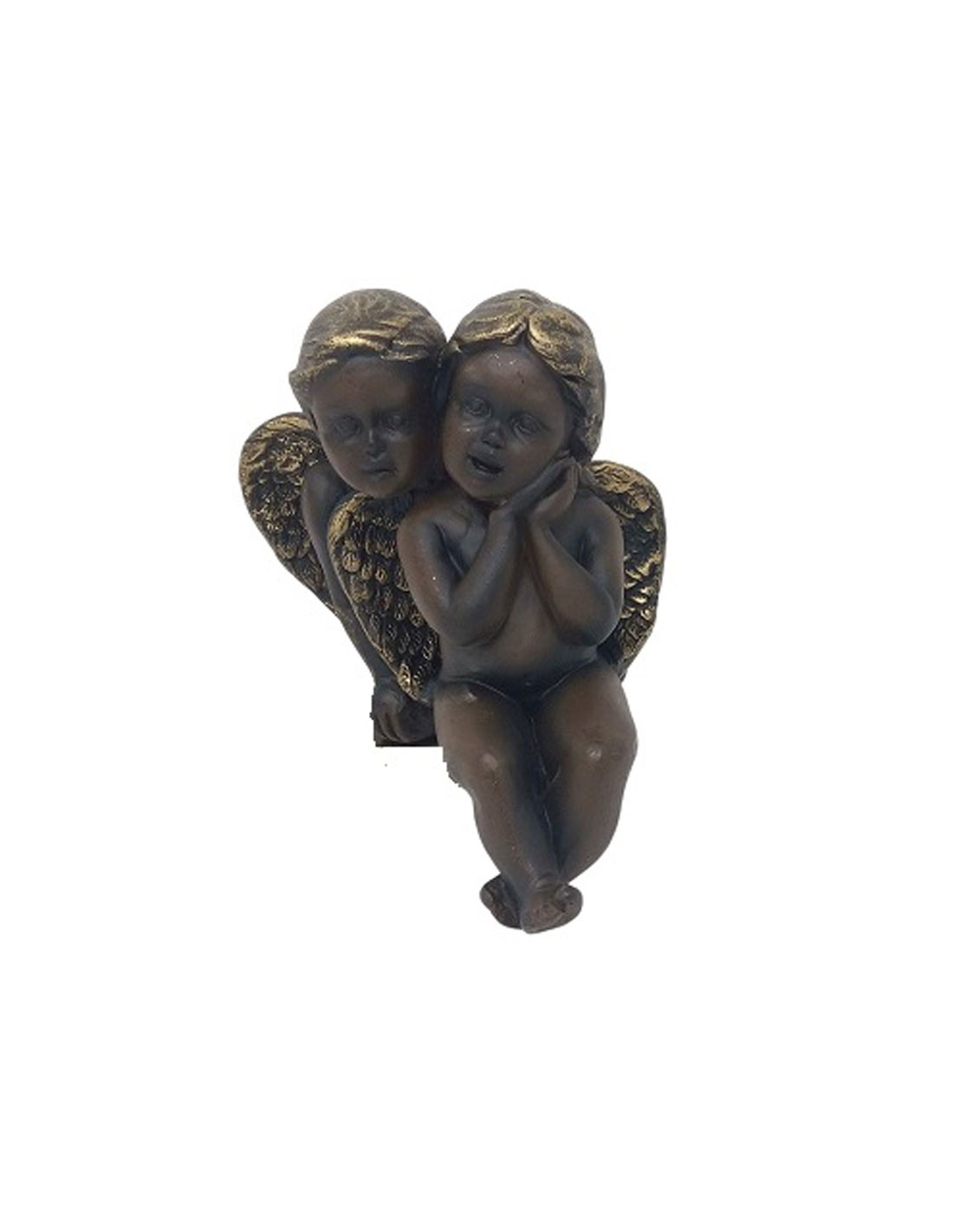 Escultura de resina pareja de ángeles sentados para estante. Medidas 21*20 cm