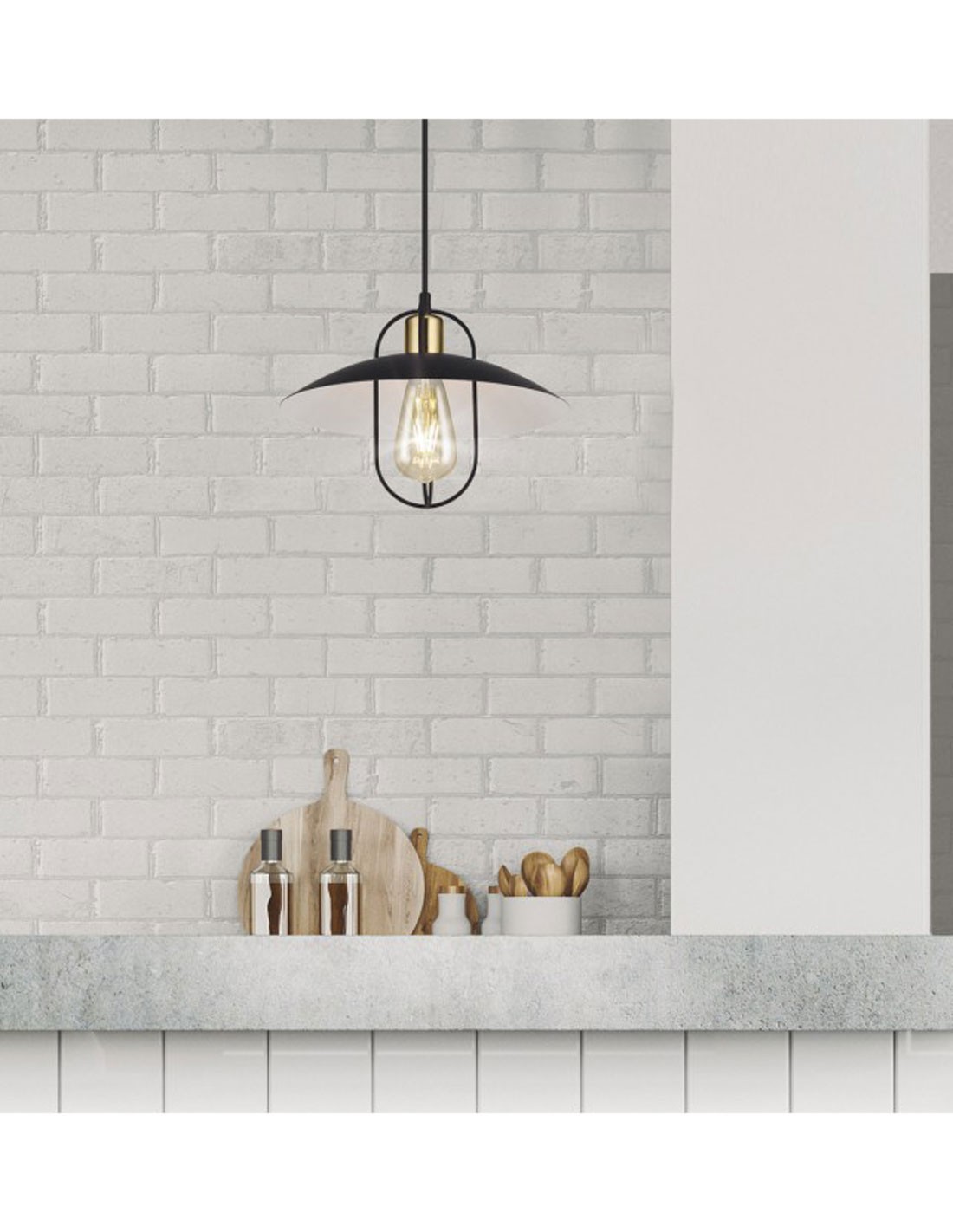 Lámpara de Techo Colgante de 1 Luz de metal acabado blanco con montura cromo. Diámetro 35 cm.