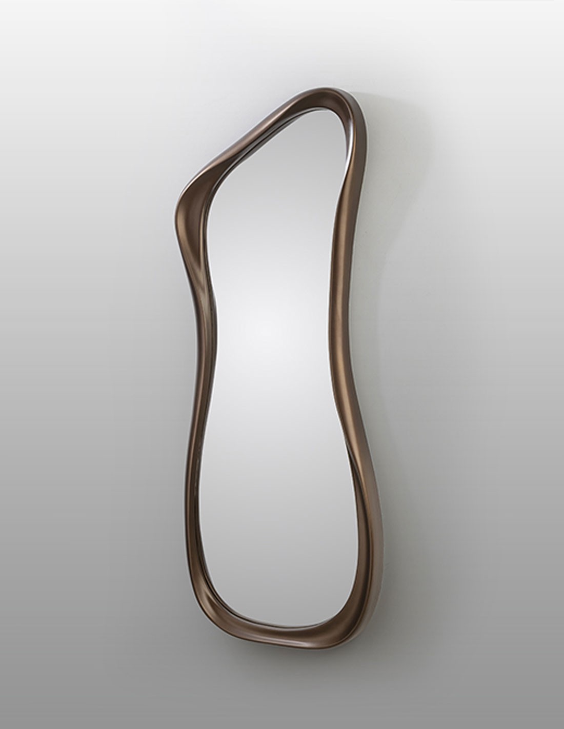 Espejo realizado en cristal, DM y poliuretano acabado en bronce oscuro. Medidas 170*69*7 cm.