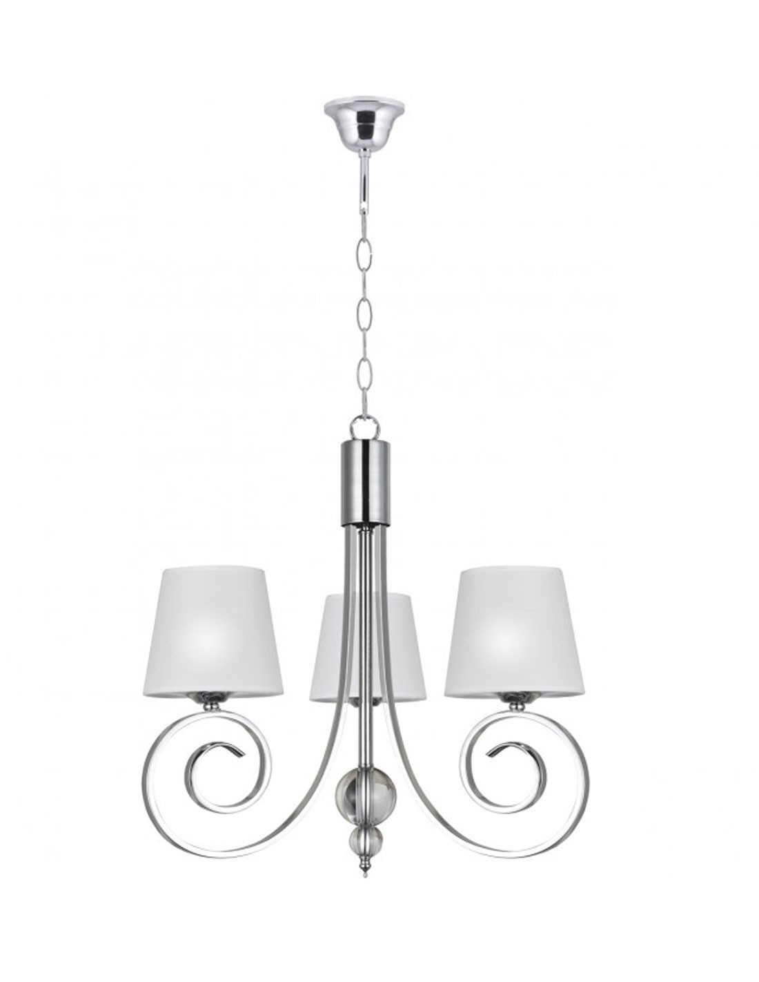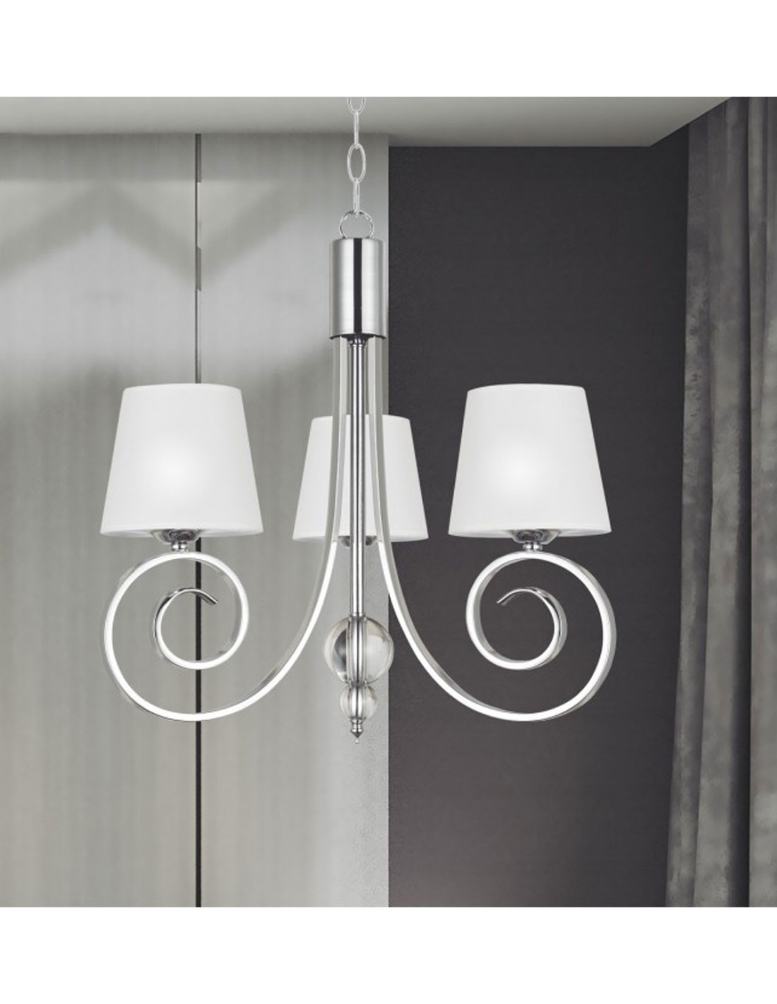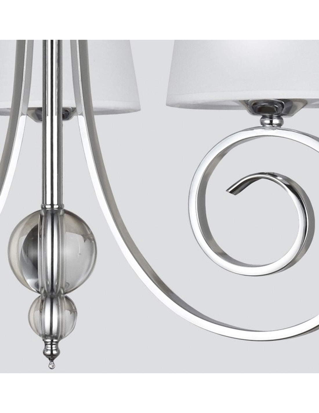 Lámpara de Techo Colgante de 5 luces de metal acabado cromo con pantallas de tela. Altura ajustable.
