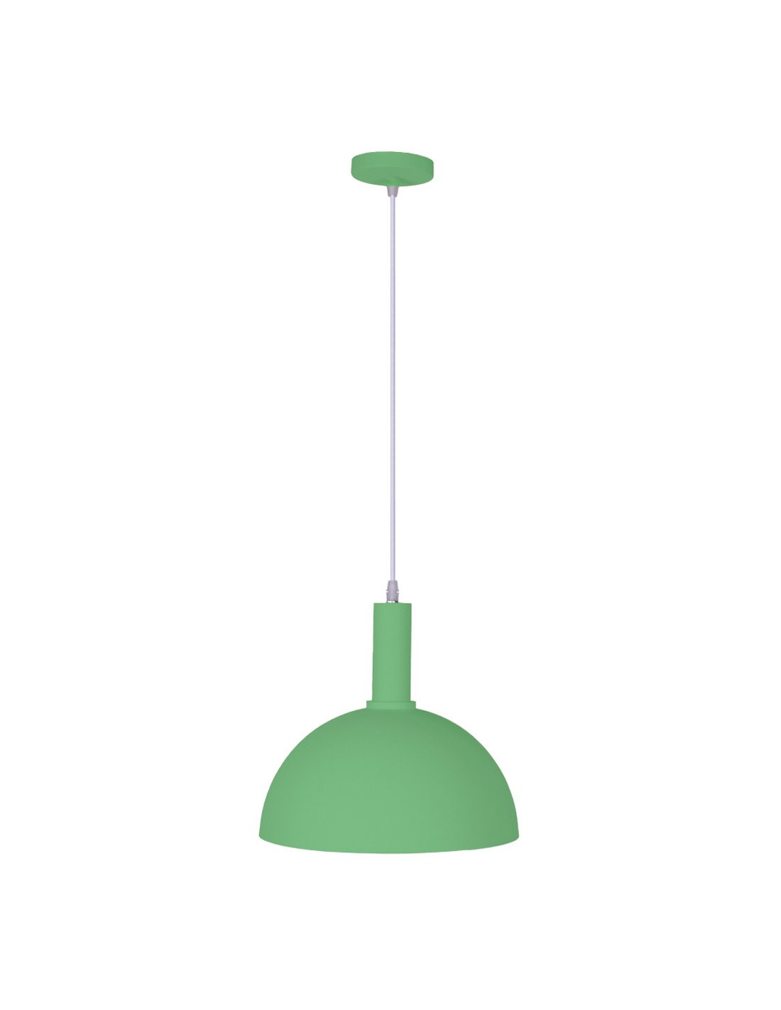 Lámpara Colgante con 1 Luz de metal acabado verde. Altura ajustable. Diámetro 30 cm