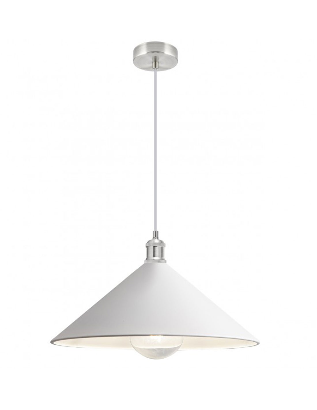Lámpara de Techo Colgante de 1 Luz de metal acabado blanco con montura cromo. Diámetro 35 cm.