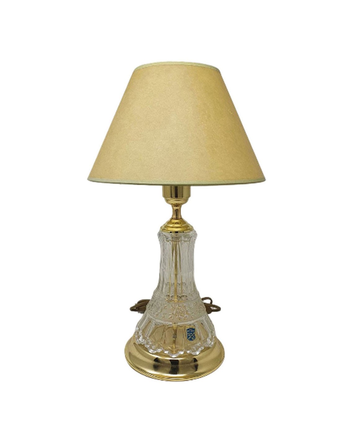 Lámpara Rinconera de 1 luz acabada en metal dorado y cerámica blanca raya oro. Pantalla de 40 cm de diámetro Blanca.
