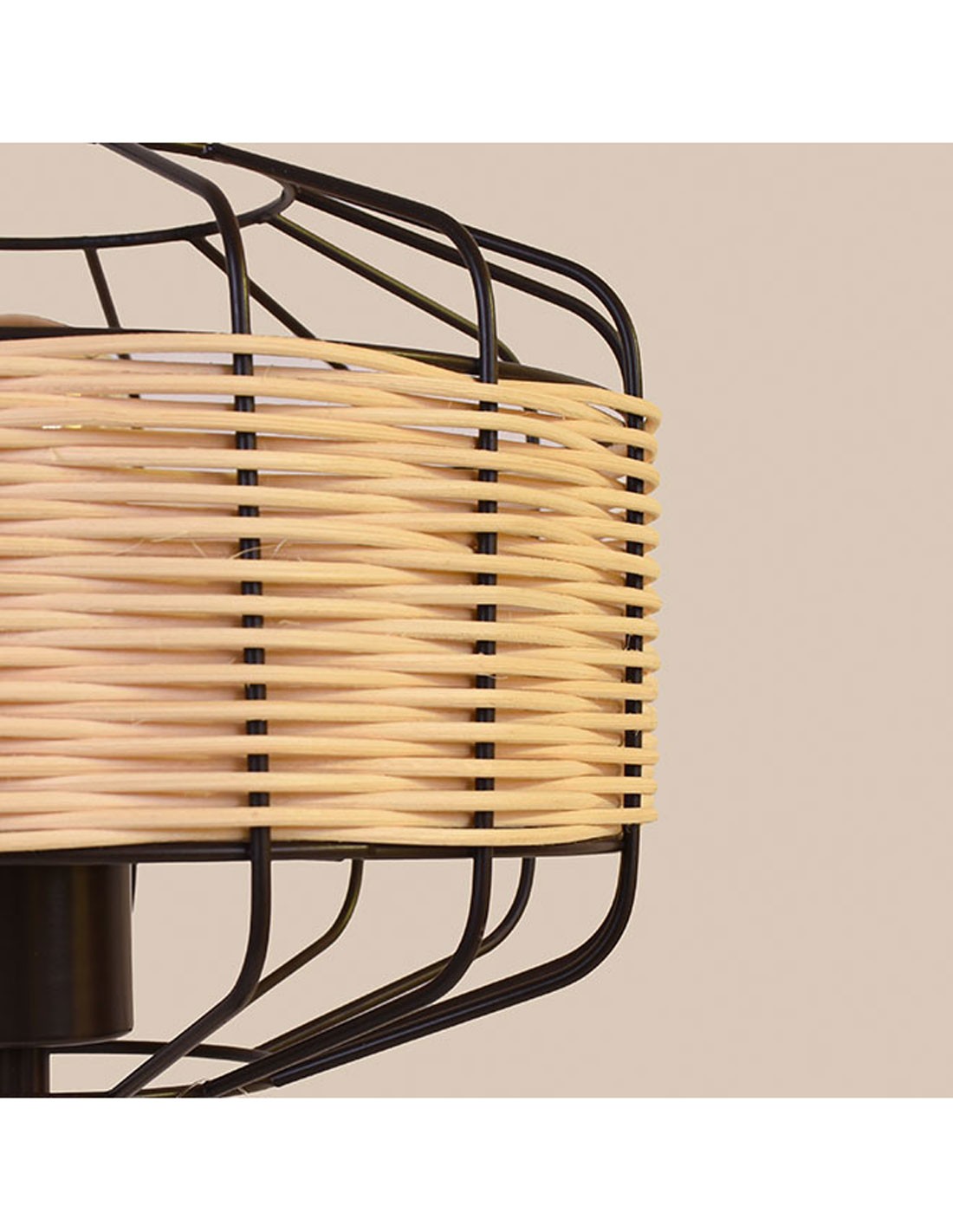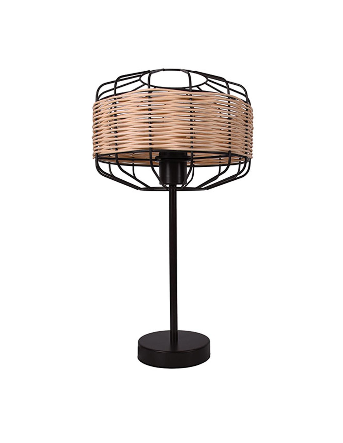 Lámpara de Sobremesa de 1 Luz acabado hierro marrón combinado ratán.