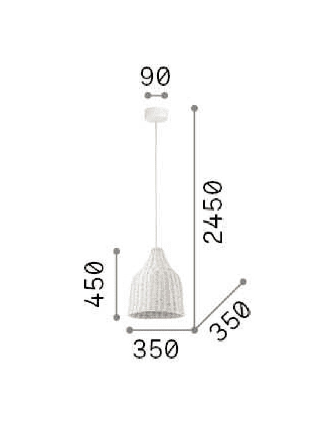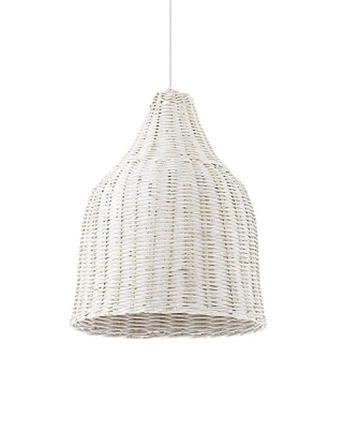 Lámpara de Techo Colgante de 1 Luz con marquesina de metal acabado blanco mate y cesta de mimbre pintada en blanca. Altura ajustable. Diámetro 35 cm