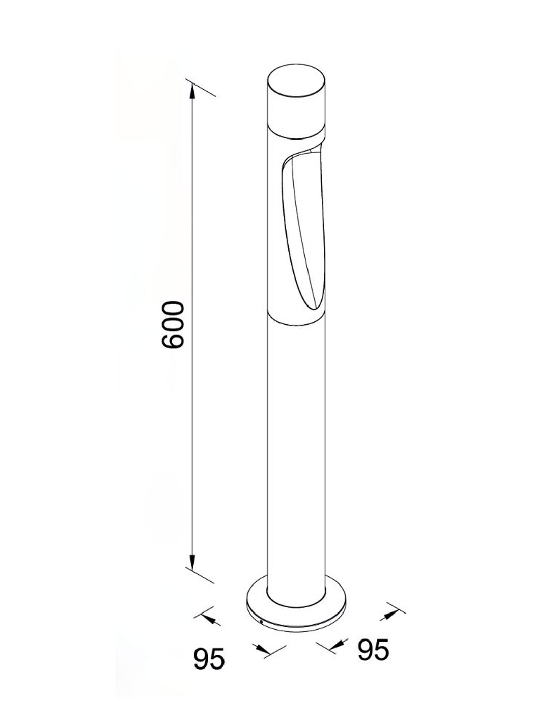 Baliza de Exterior Led de aluminio terminado en negro. Apto para Exterior IP65. Alto 60cm.
