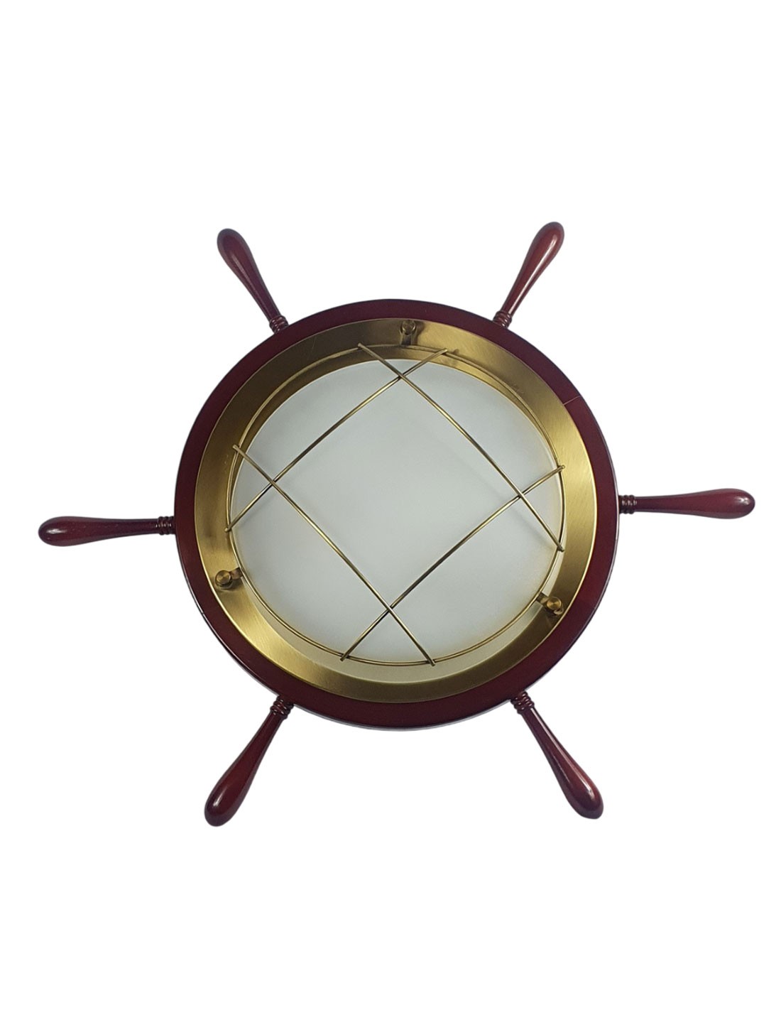 Aplique de Pared de 1 Luz realizado en madera natural con cristal ácido. Timón de barco. 1*E27, Admite luz Led.