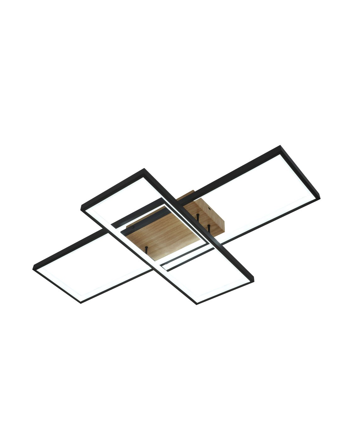 Plafón rectangular led acabado en metal, aluminio y acrílico negro y madera.