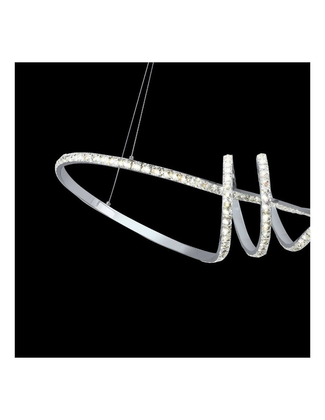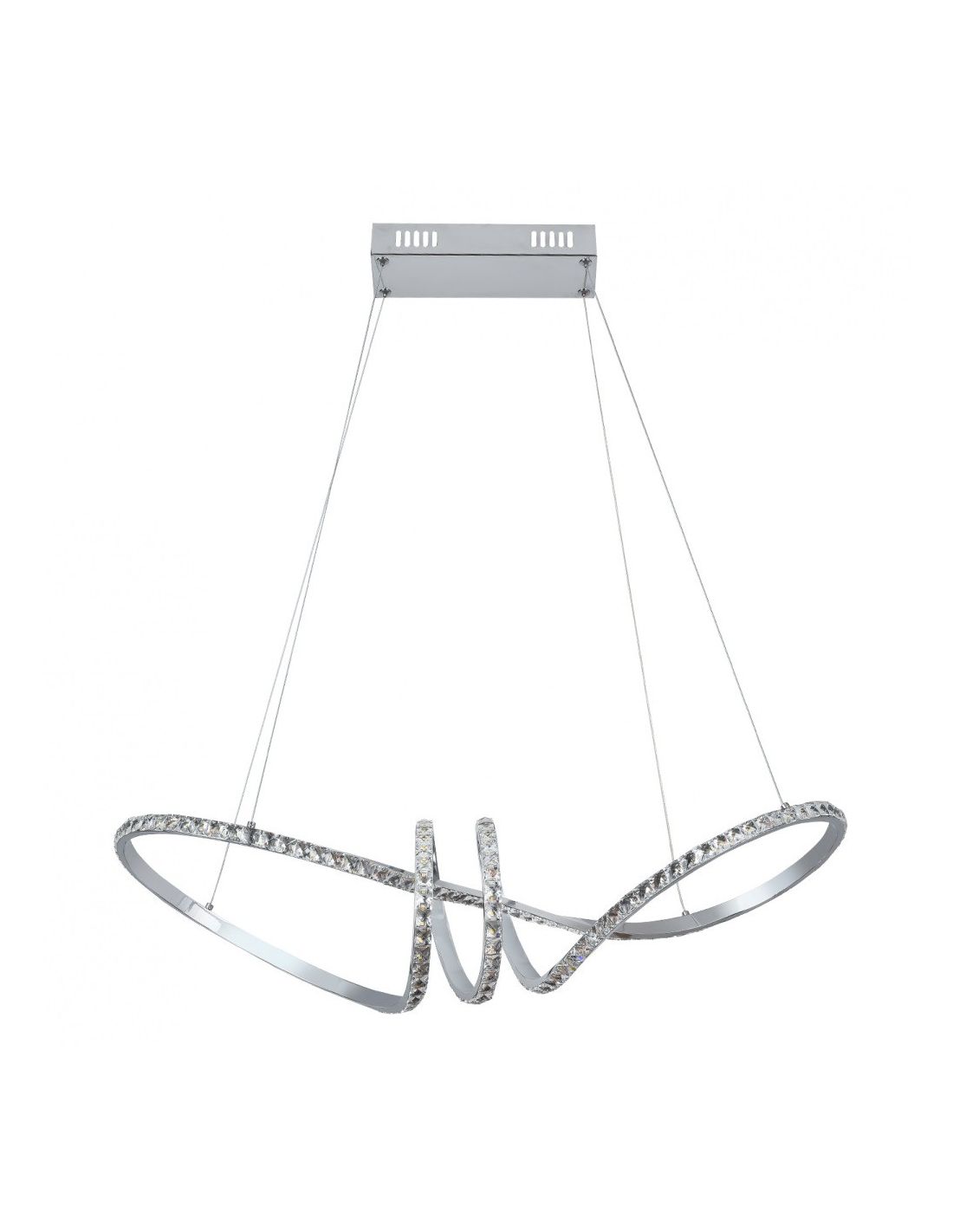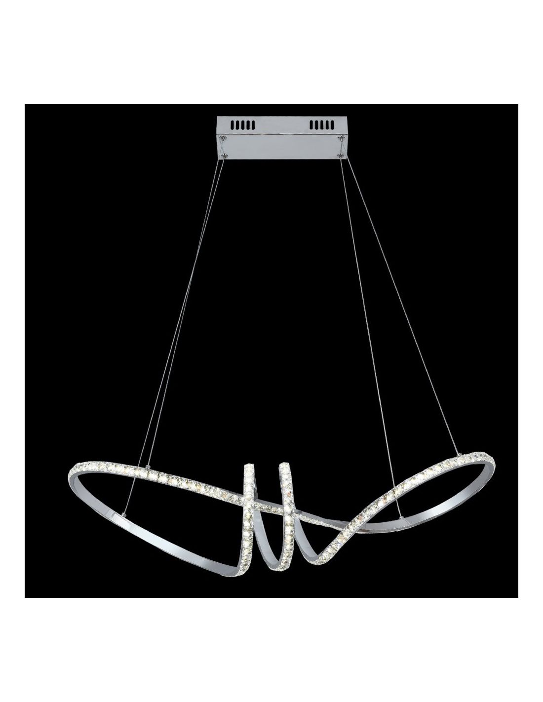 Lámpara de Techo Led de formas onduladas de metal acabado cromo y cristal. Altura ajustable.
