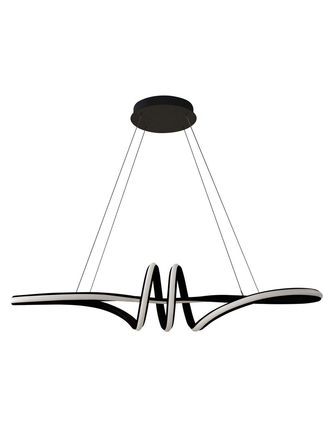Lámpara de Techo Colgante Led de Metal negra y acrílico con luz regulable en intensidad. Altura ajustable. Anchura 90 cm.