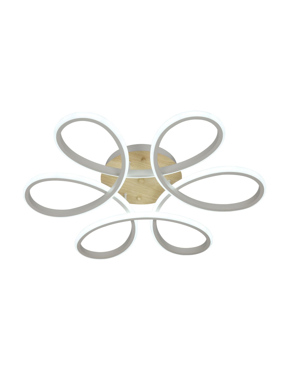 Plafón Led, con acabado en metal, aluminio y acrílico blanco y madera.