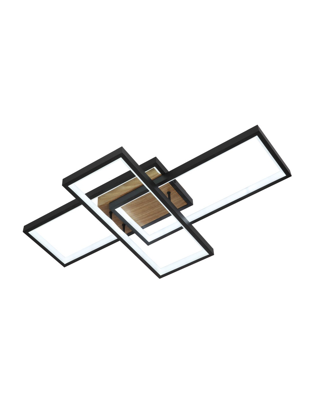 Plafón de techo Led rectangular acabado en metal, aluminio y acrílico negro y madera.