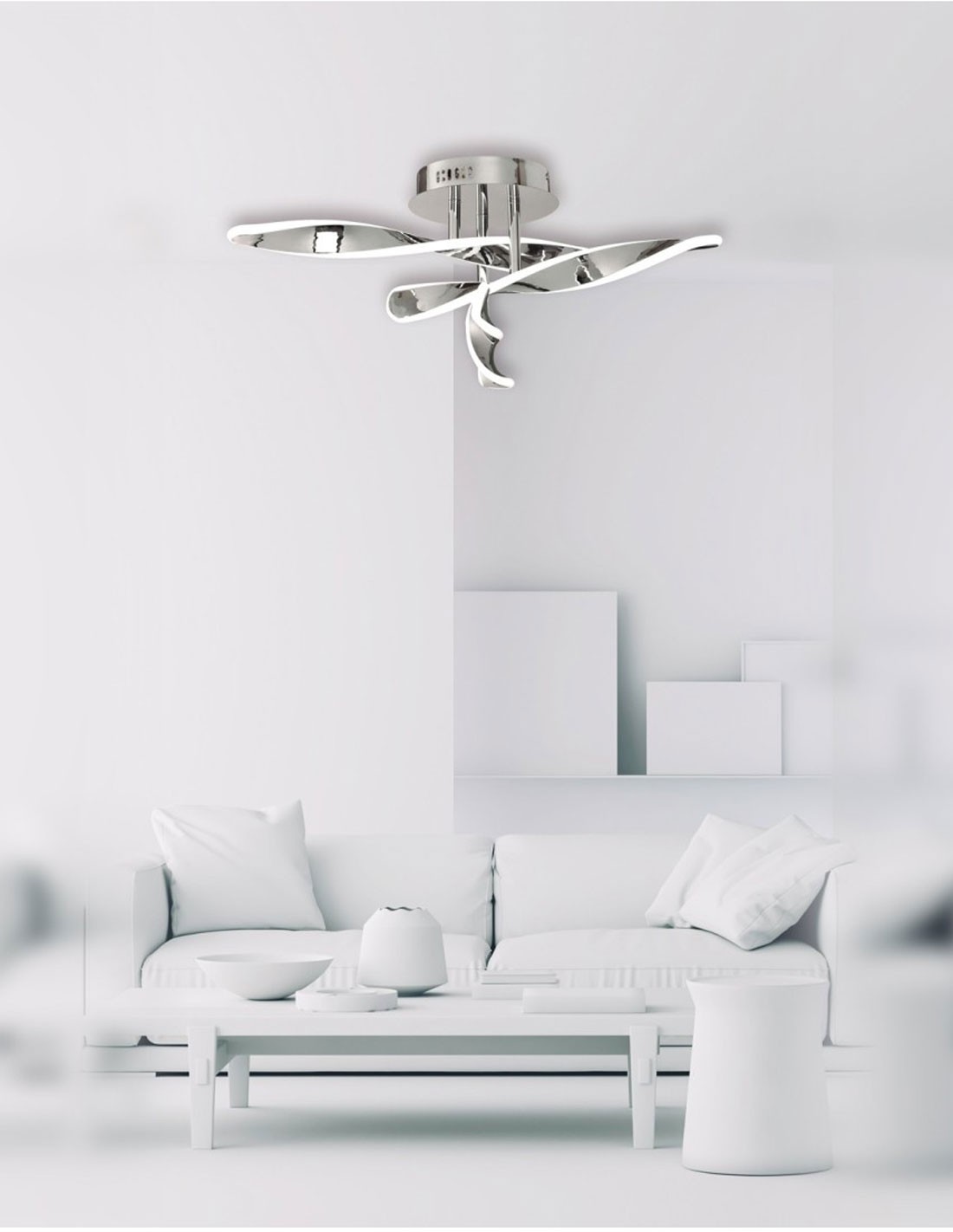 Lámpara de Techo LED de metal y policarbonato acabado cromo y blanco.
