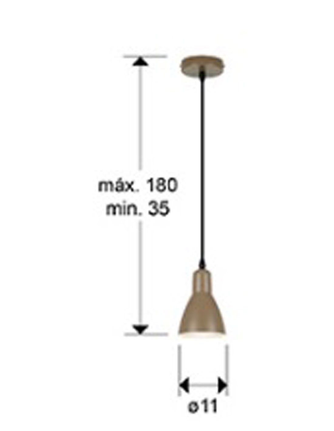 Lámpara de Techo de 1 Luz de metal acabado marrón satinado. Altura ajustable.