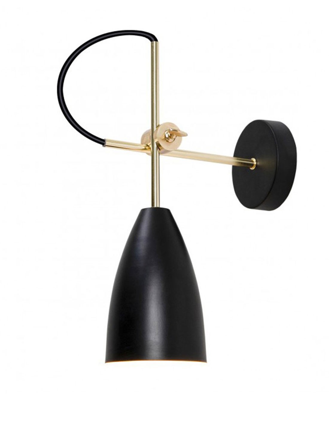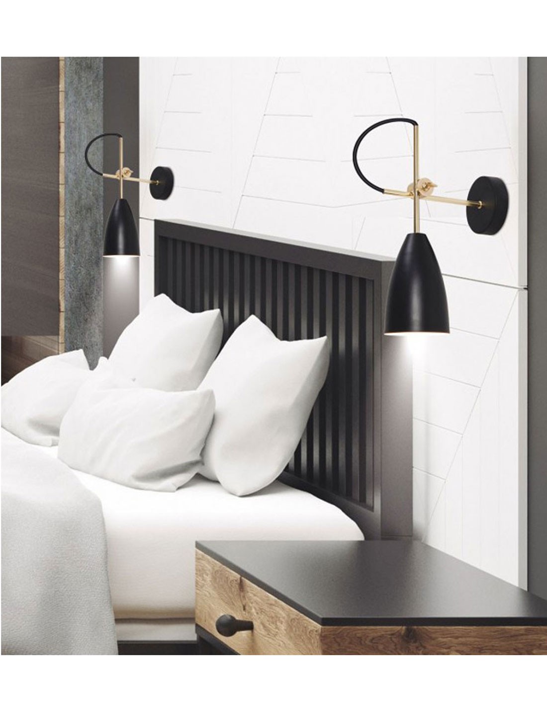Aplique de Pared retro de 1 Luz de metal Negro-dorado y brazo articulable.