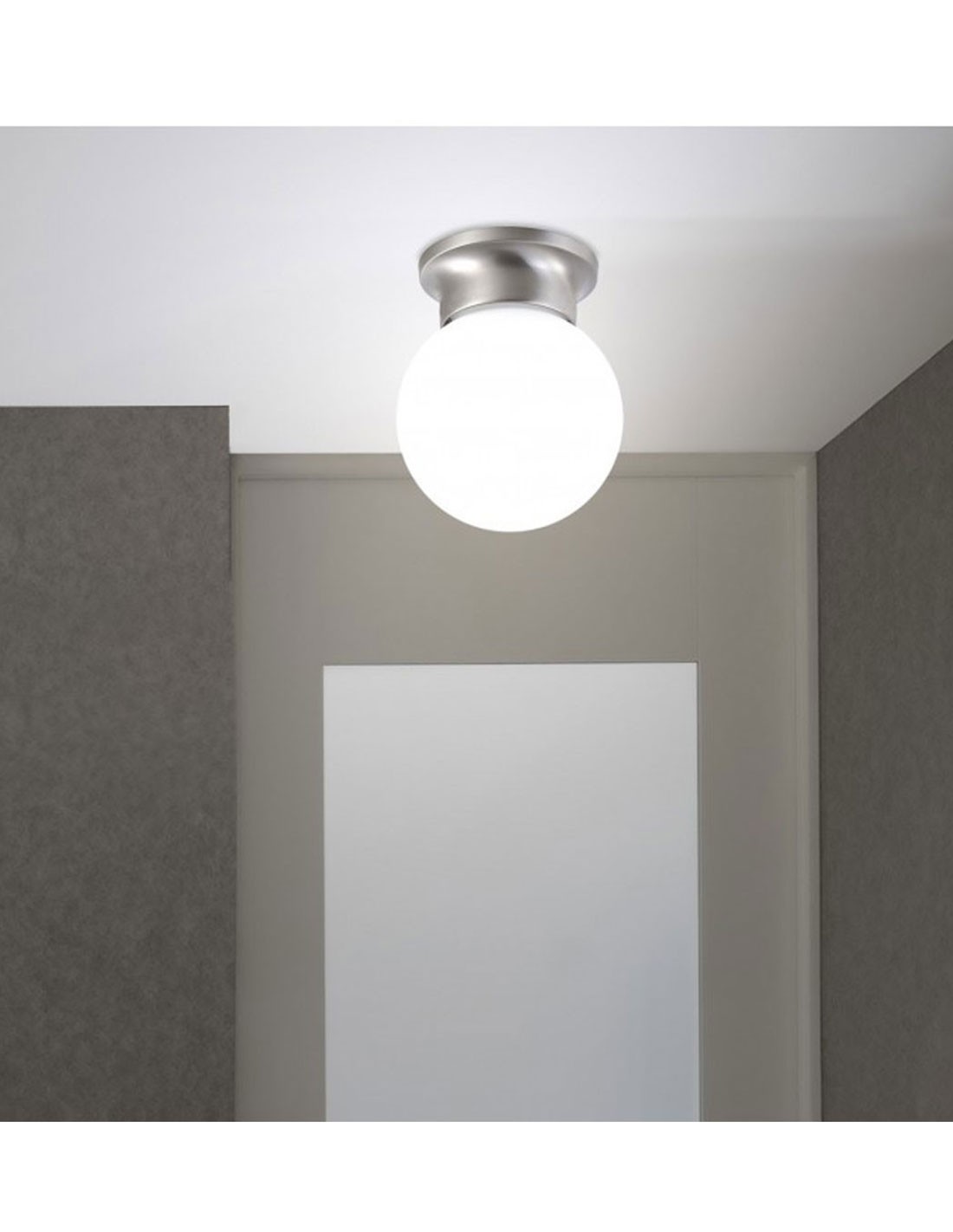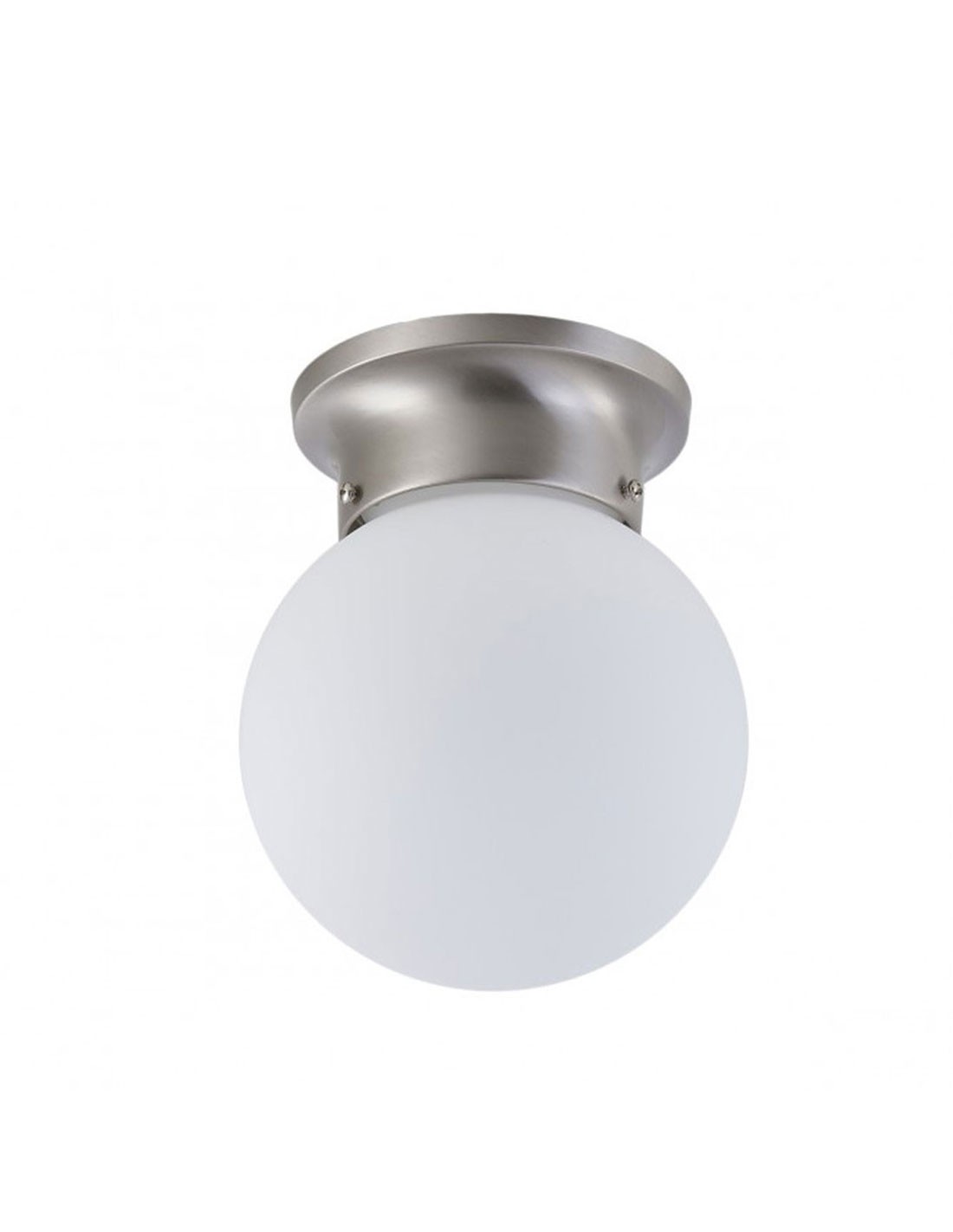 Plafón de techo de 1 Luz de metal Blanco con bola de cristal Blanca.