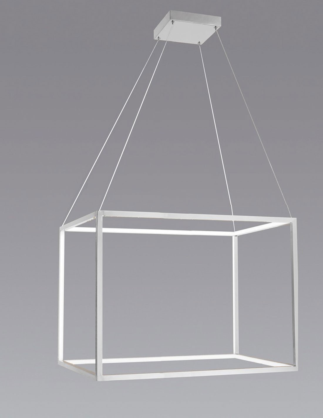 Lámpara de Techo de Led realizada en metal y acrílico color blanco con forma cuadrada. Altura ajustable.