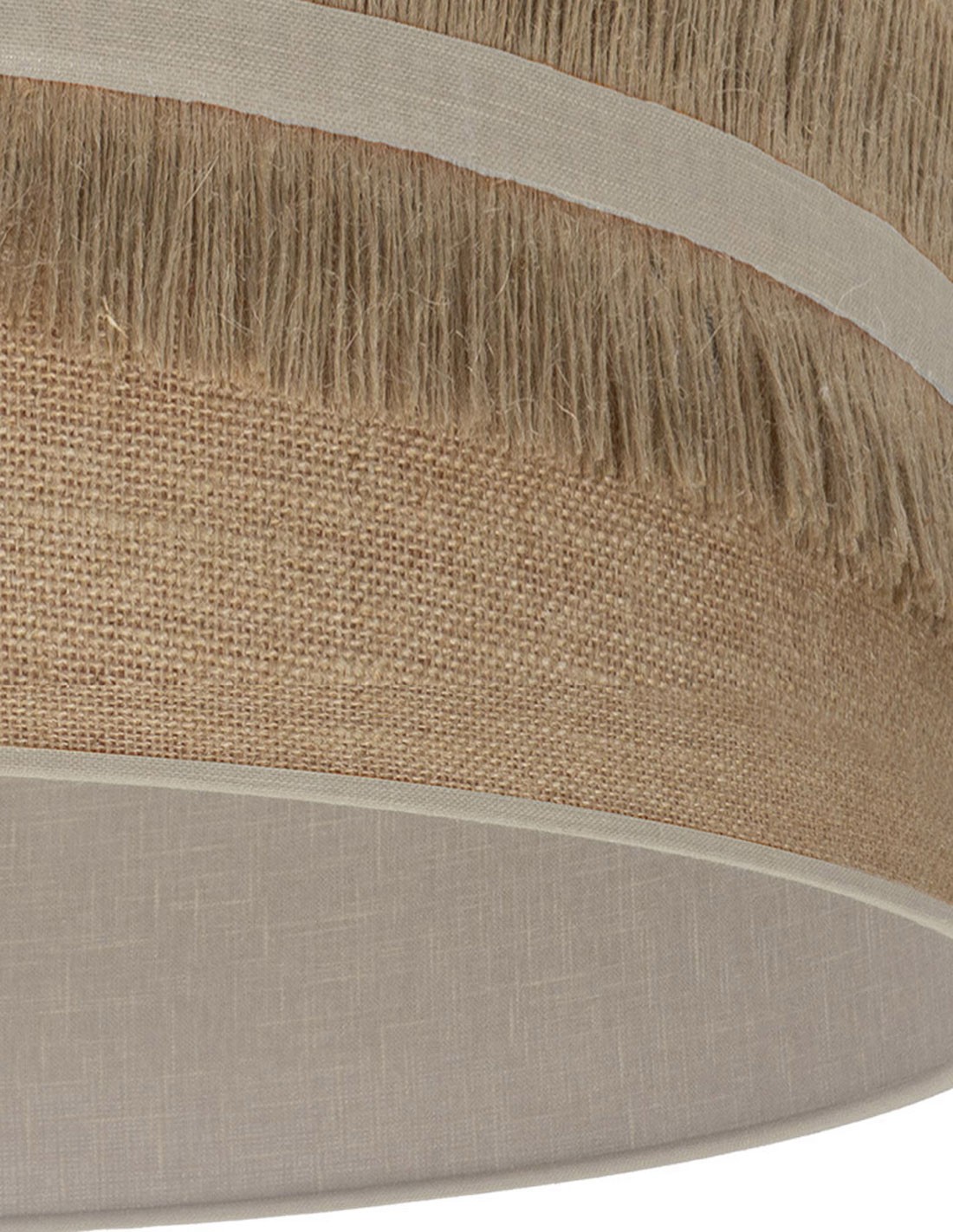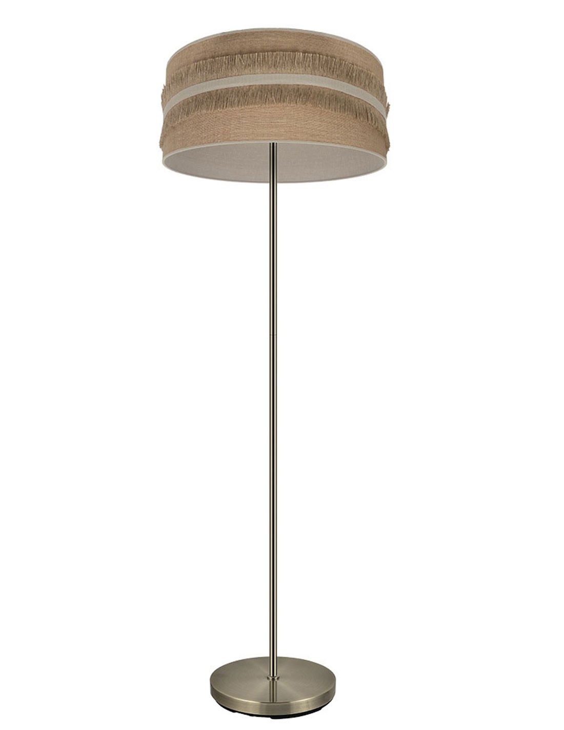 Lámpara de Pie de Salón de 1 Luz de metal acabado cuero con pantalla de saco combinado con lino beig. Alto 164 cm.