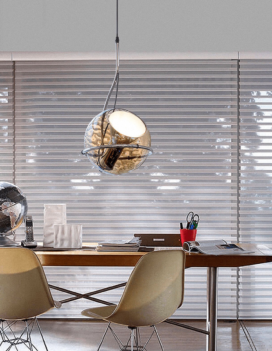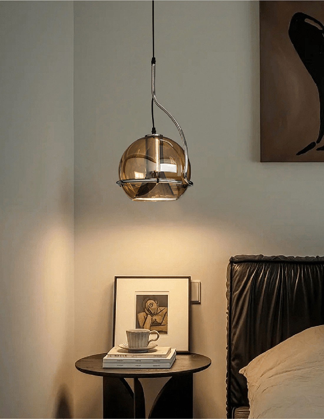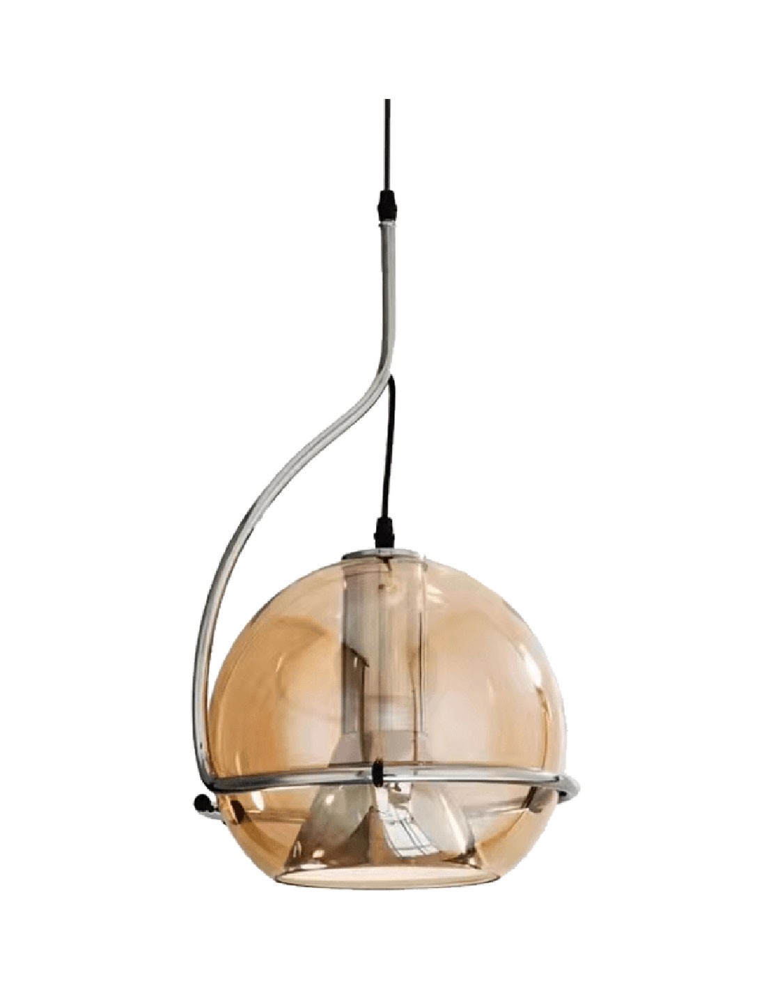 Lámpara de Techo Colgante de metal cromo y cristal ambar. Altura ajustable.