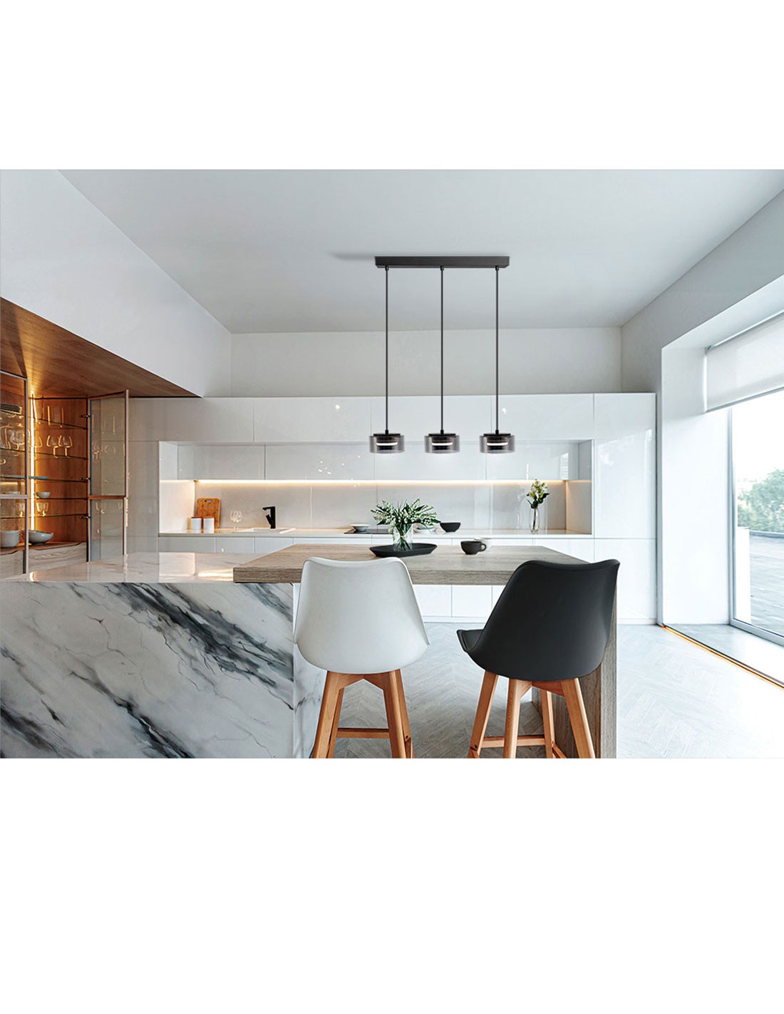 Olaia Lámpara Lineal 3 Luces Negro Smoke