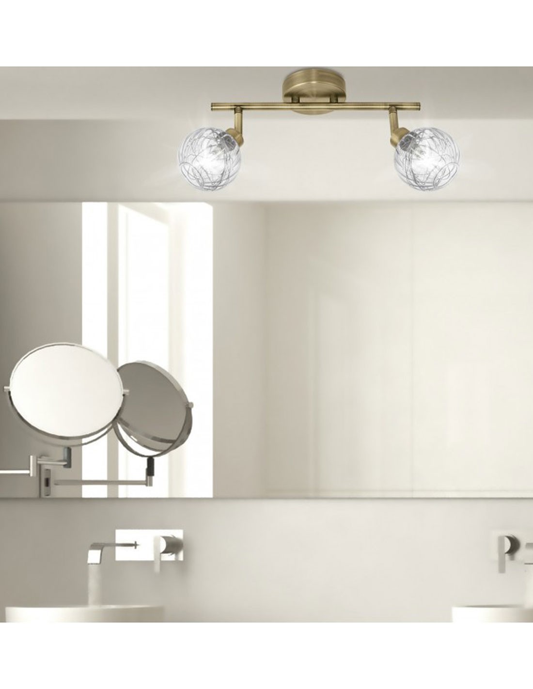 Colección formada por plafón de techo de 2, 3 y 5 luces en distintas versiones, aplique de pared y sobremesa disponible acabado marrón, dorado y cromo.