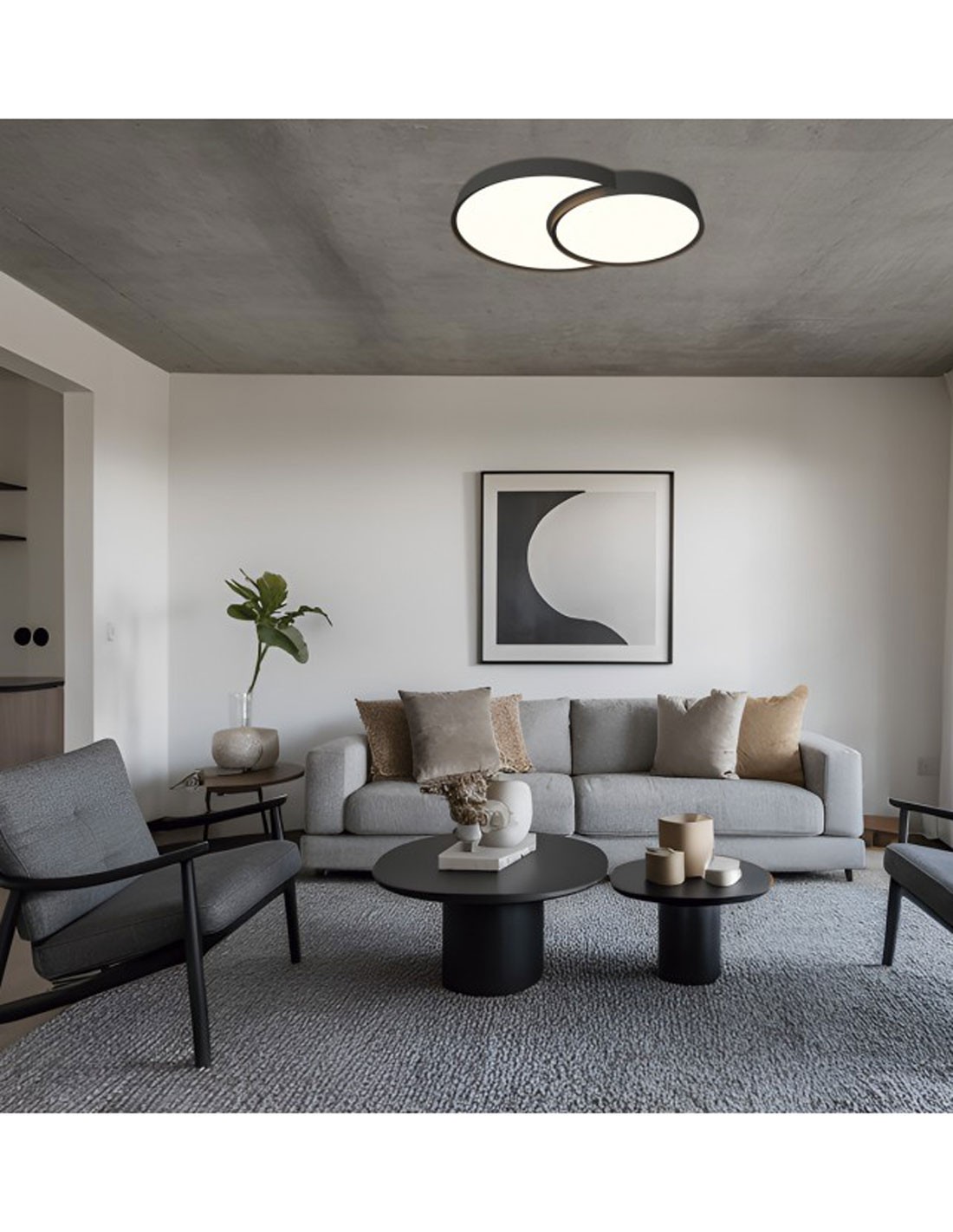 Plafón/Aplique de diseño Led de metal y metacrilato acabado blanco y negro, Diámetro 59 cm.