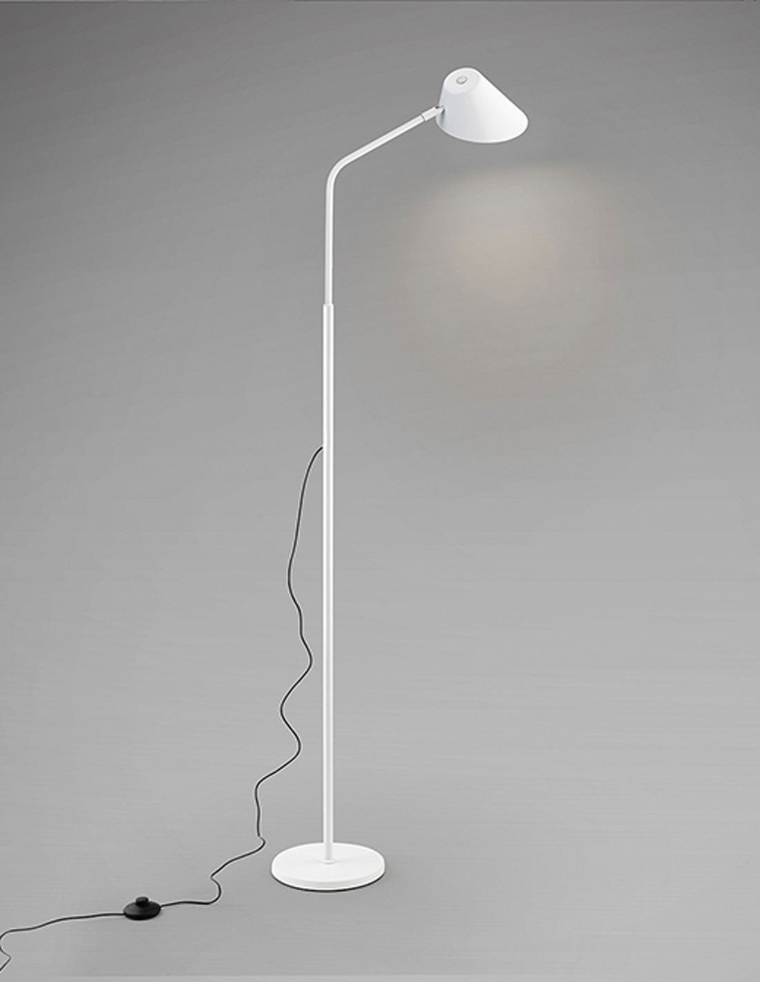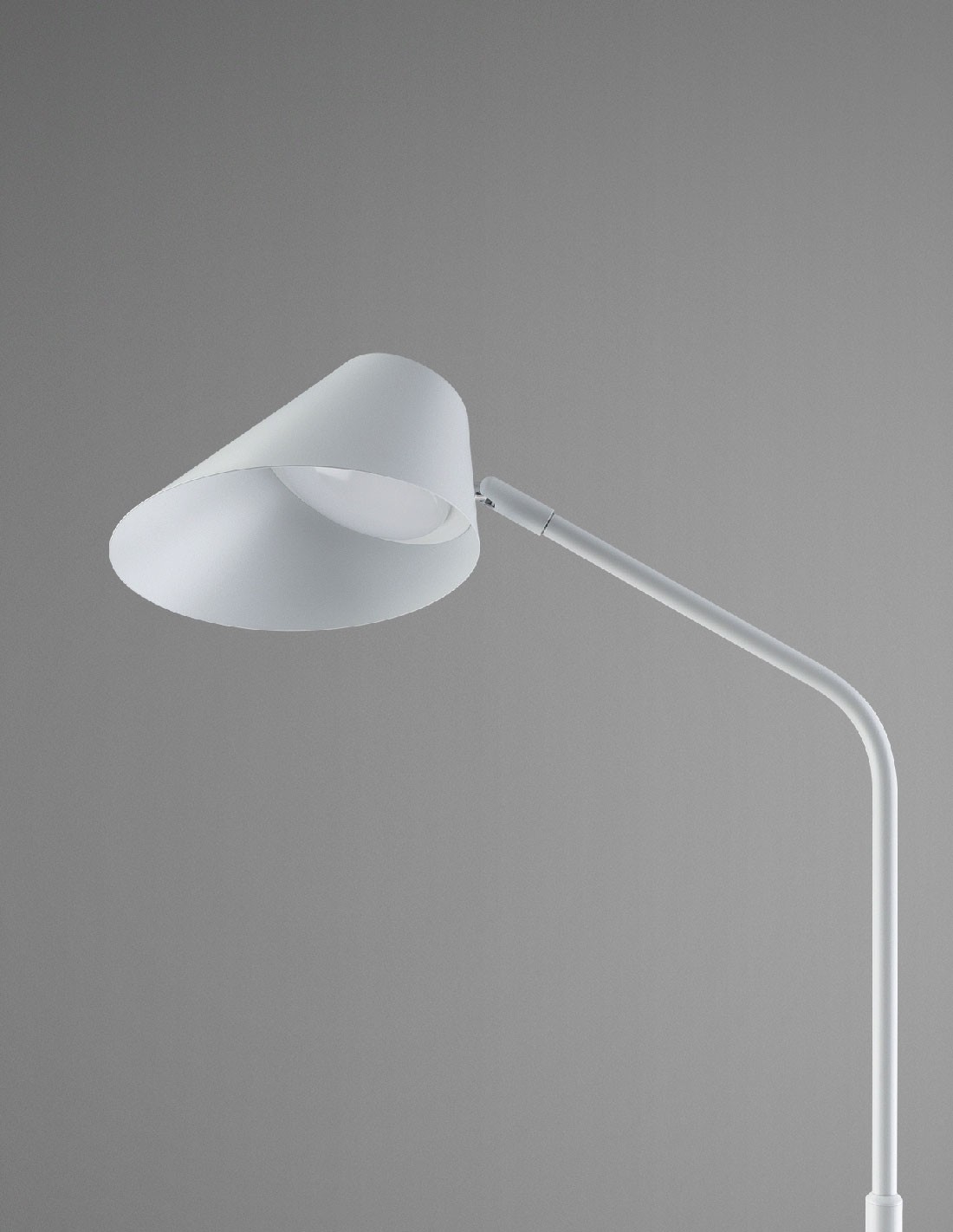 Lámpara Pie de Salón de metal y aluminio acabado en blanco mate con difusor de silicona opal.