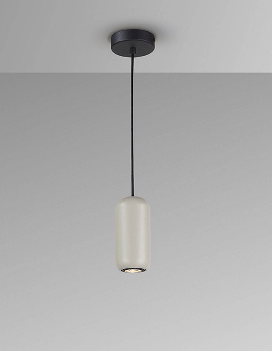 Lámpara de Techo de metal acabado negro mate con tulipa metálica gris claro. Altura ajustable.
