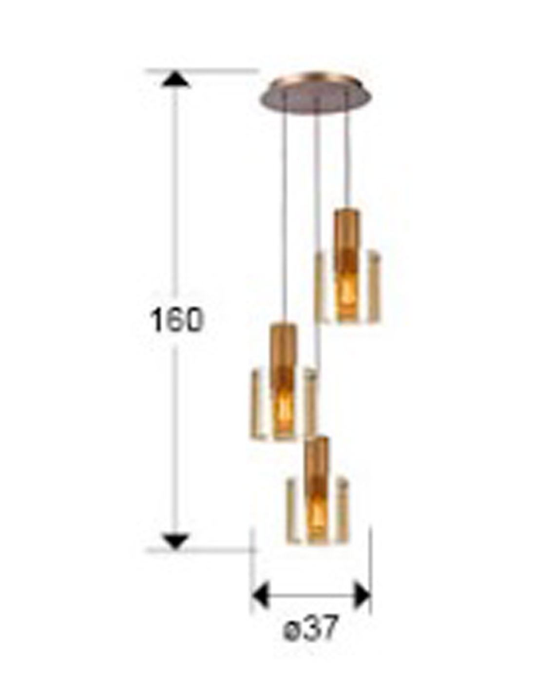 Lámpara Venize Plafón 3 Luces Cobre Ambar.