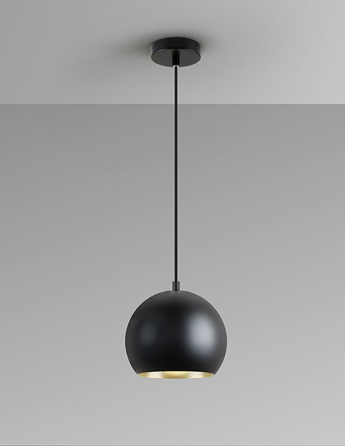 Lámpara de Techo Colgante de metal acabado negro interior dorado. Altura ajustable.