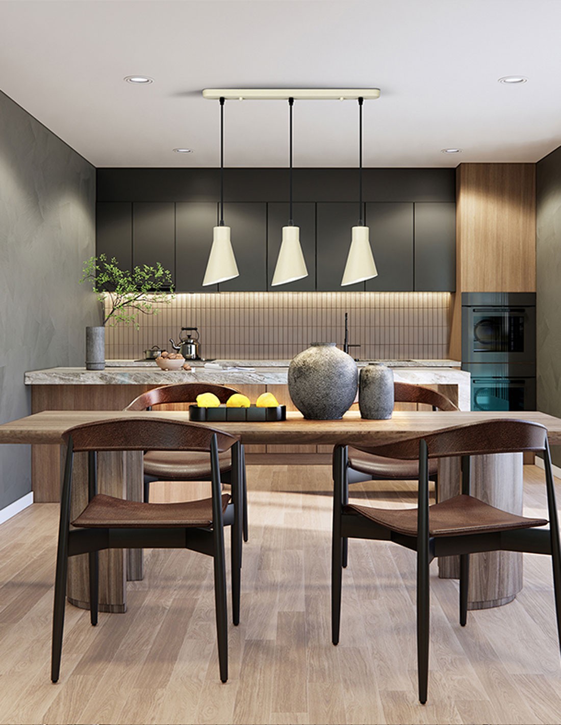 Disponible en colgante de 1 luz y lámpara lineal de 3 luces.