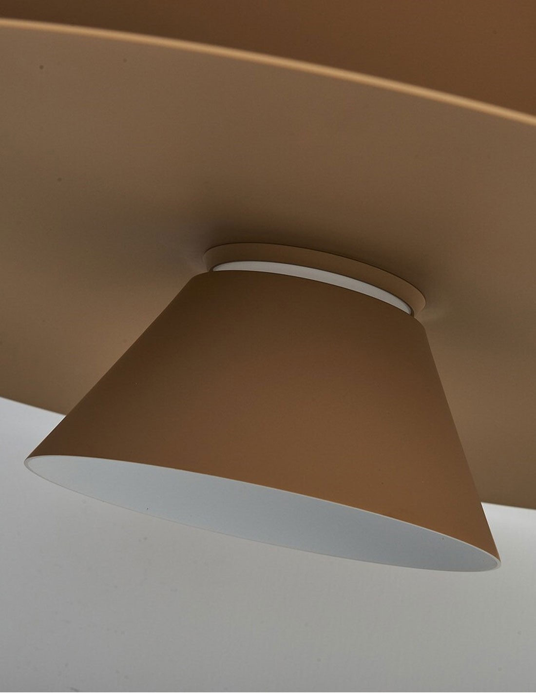 Lámpara de techo led realizada en aluminio acabado caqui mate. Altura ajustable.