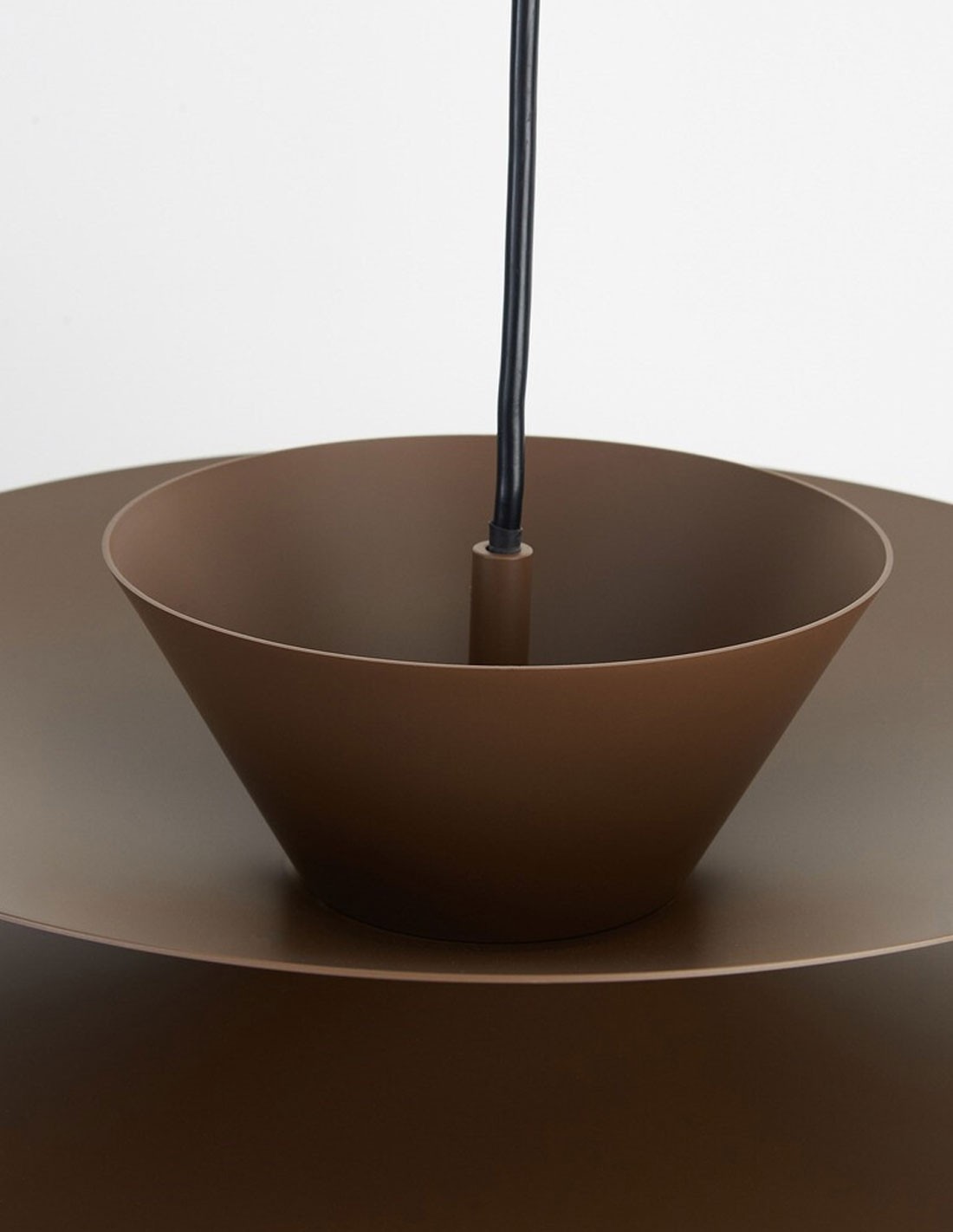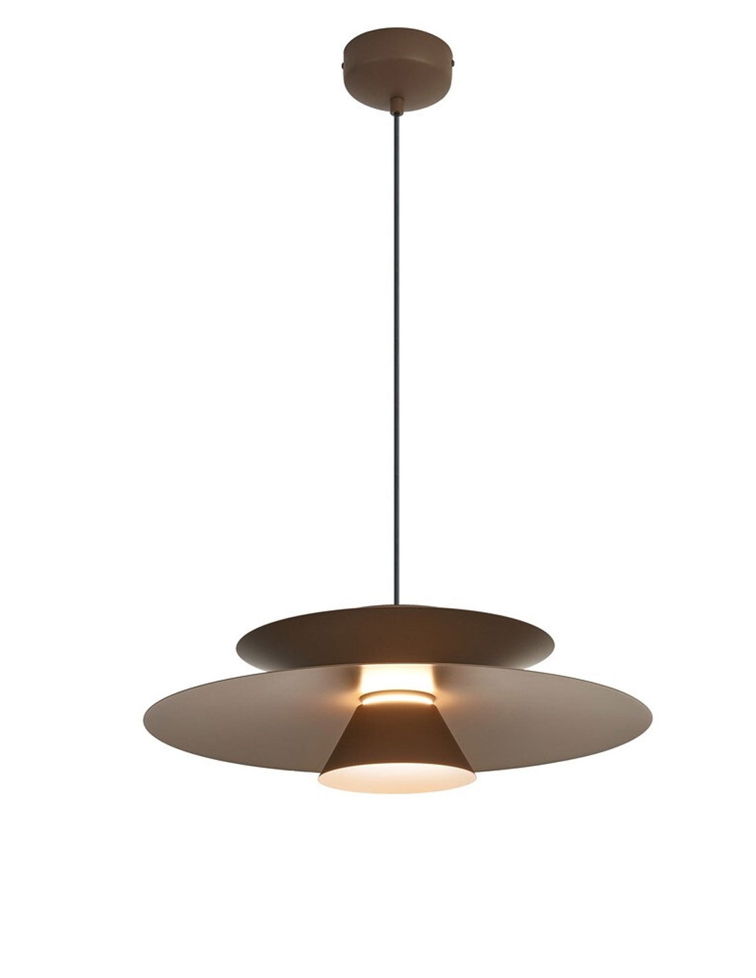 Lámpara de techo led realizada en aluminio acabado café oscuro. Altura ajustable.
