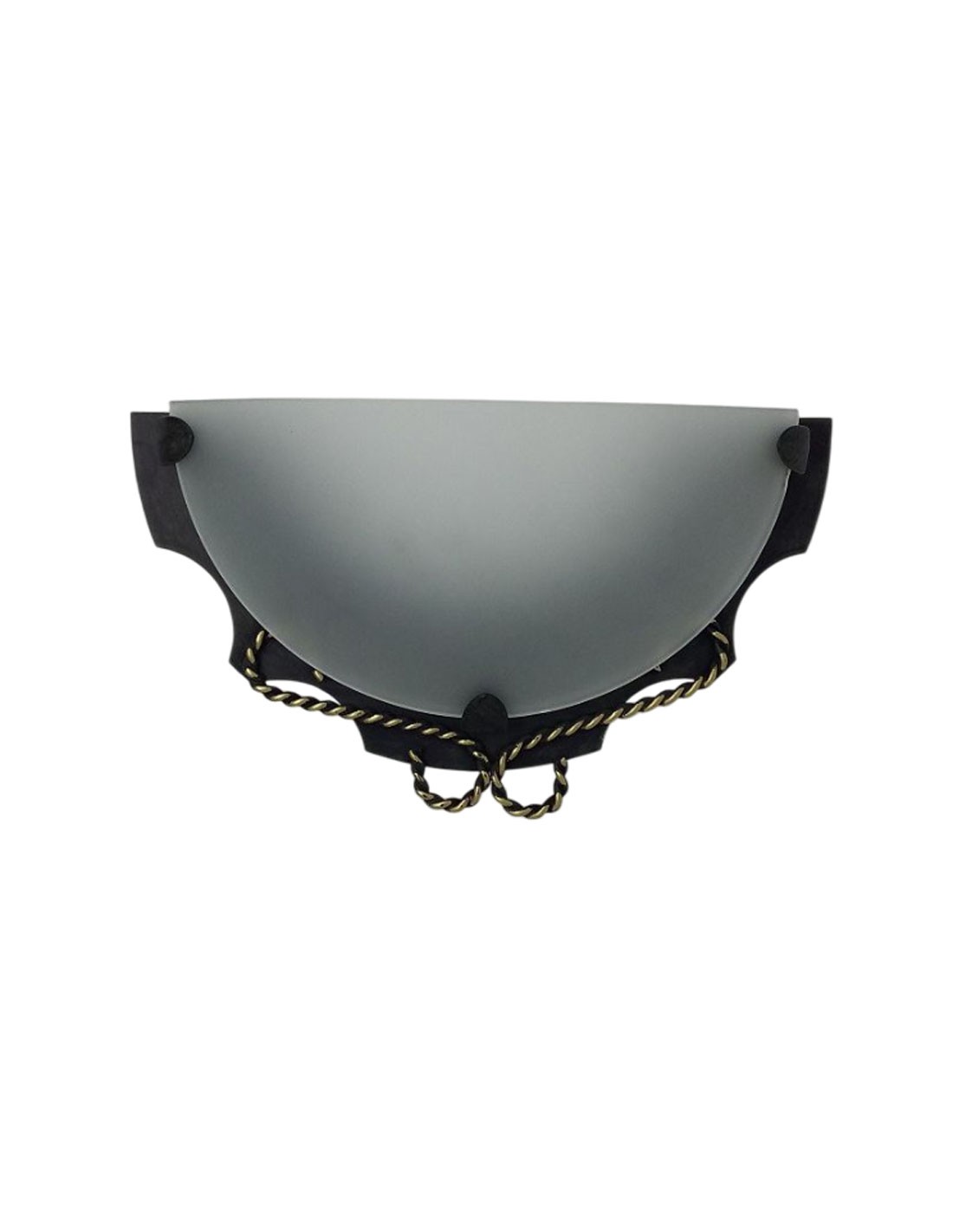 Plafón de Techo de 1 luz de forja pátina azul con cordón oro, diámetro 37 cm.